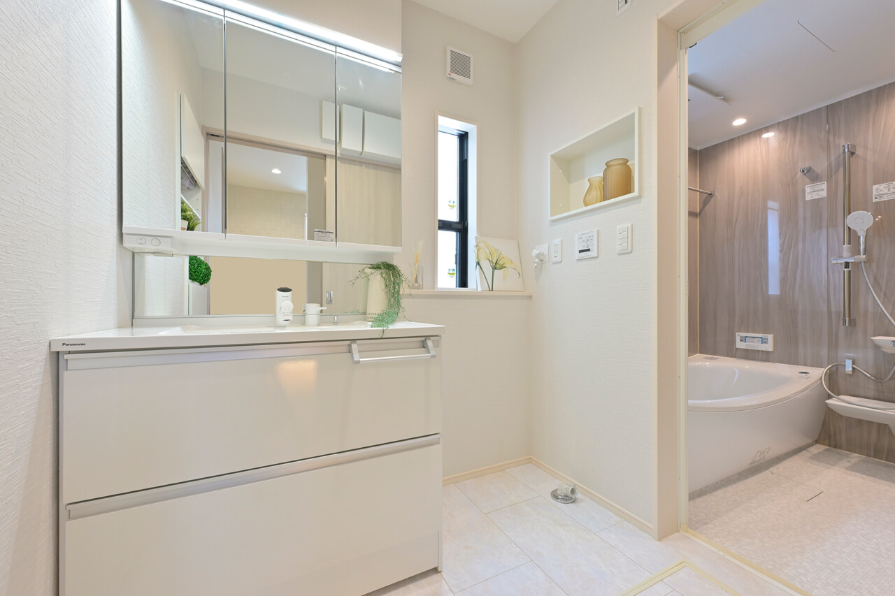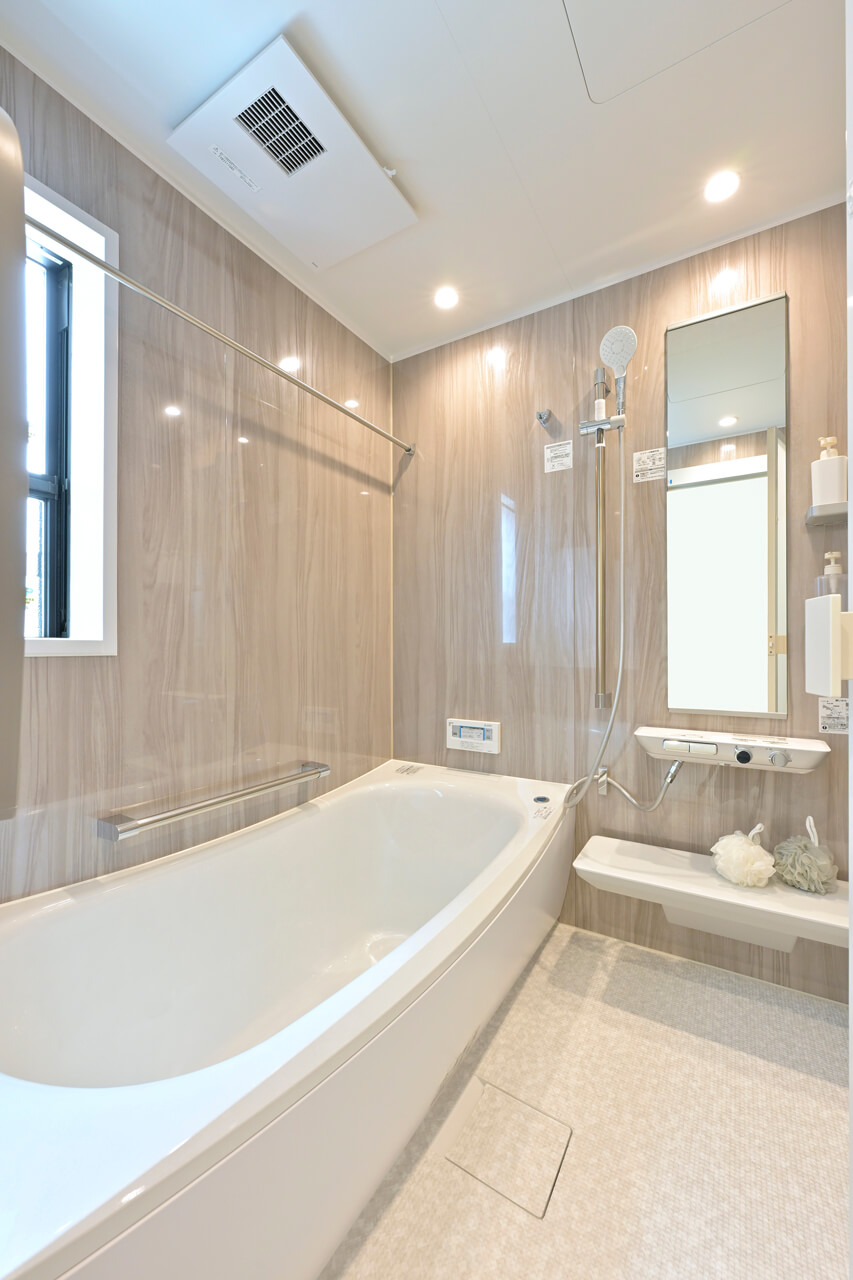 浴室換気暖房乾燥機 雨の日も気にせず洗濯物が浴室内に干せる浴室換気乾燥暖房機を標準装備。時間も天気も気にせず干せるからとても便利。また、浴室のジメジメした環境から発生するカビも抑えることができます。