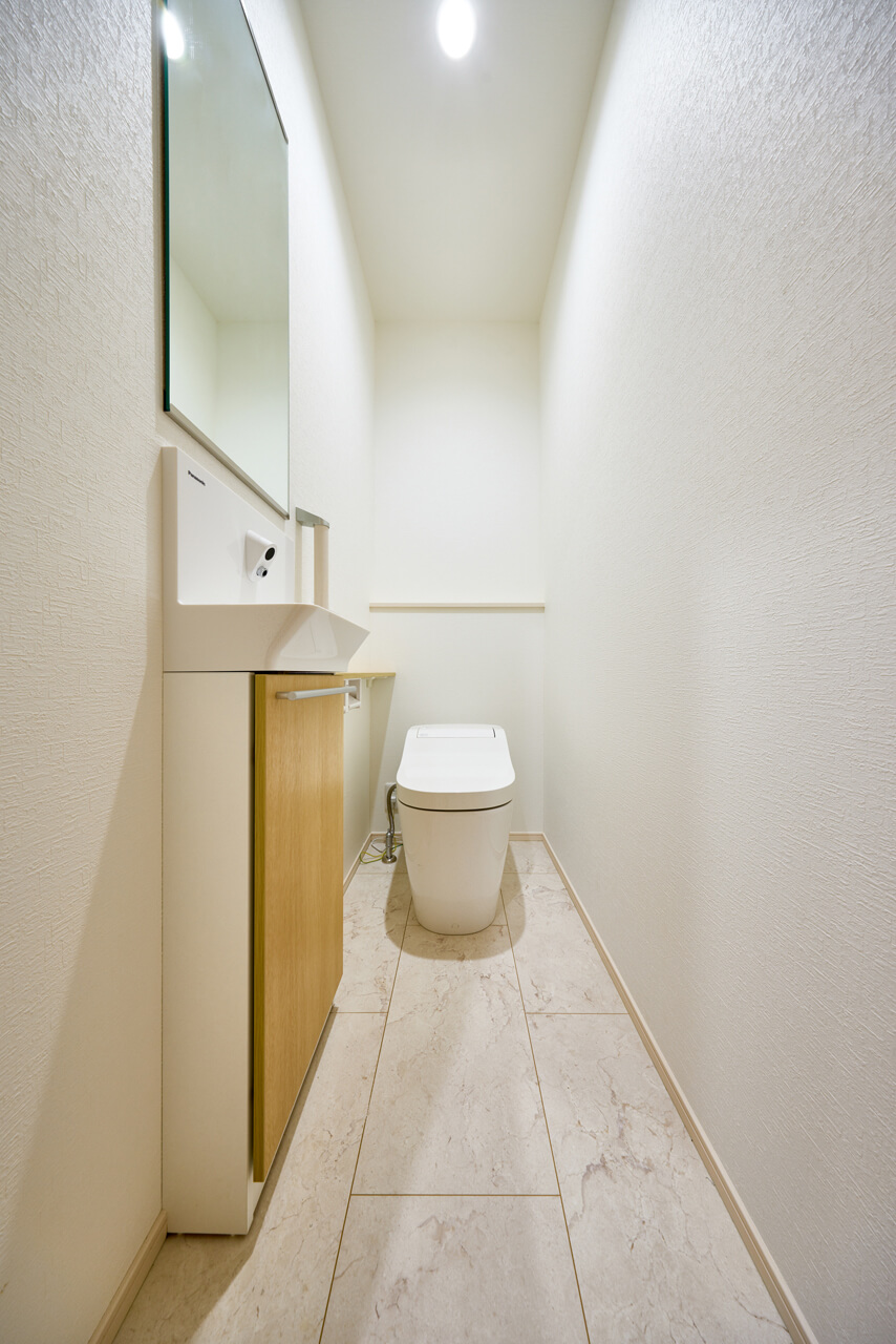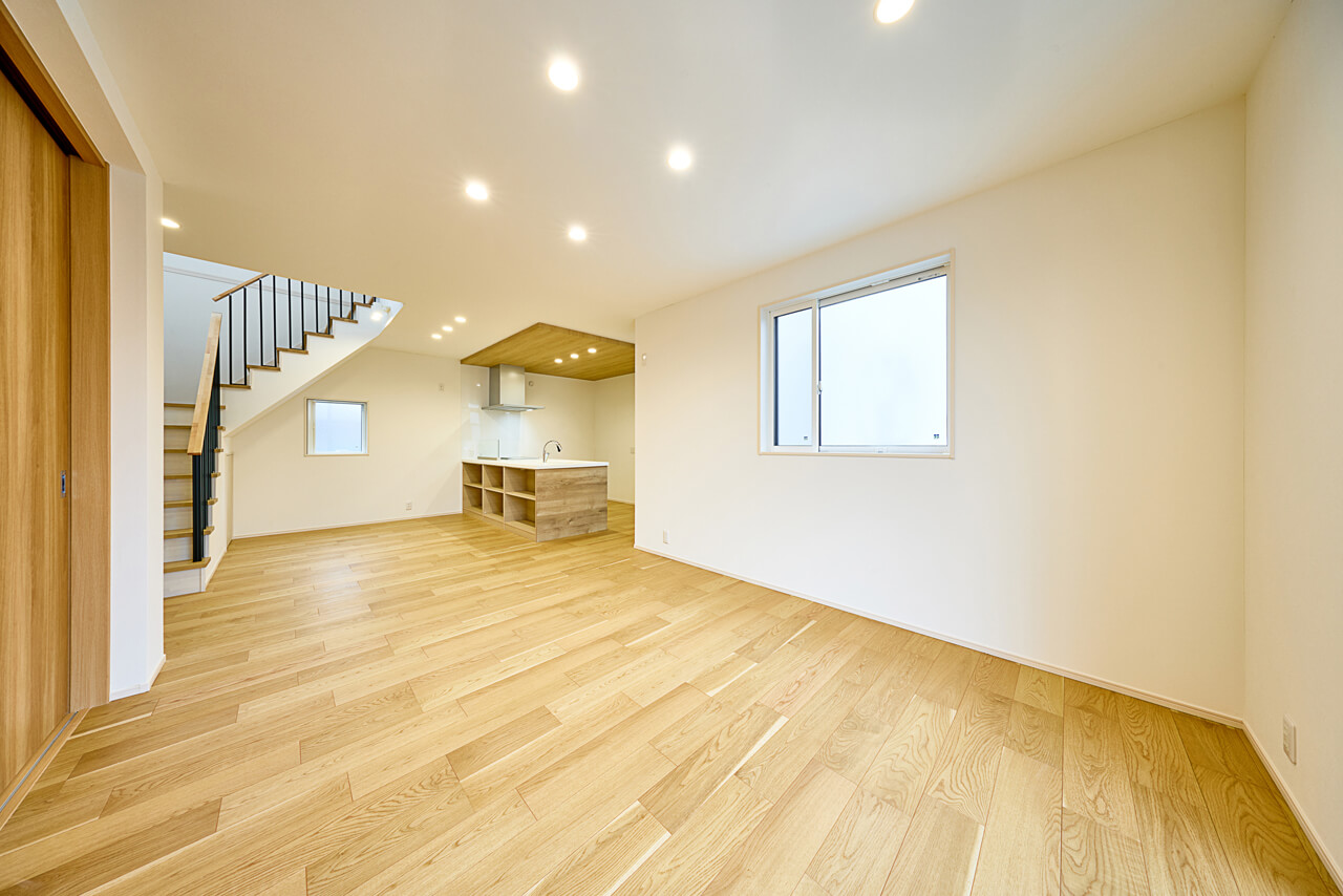 リビングという暮らしのメインスペースは、一日で家族が一番長く過ごす場所。その居心地をさらに高めるために18帖以上のワイドな広さを確保しました。広場のようなパブリックスペースがご家族の集いや団らんを心地よく育みます。