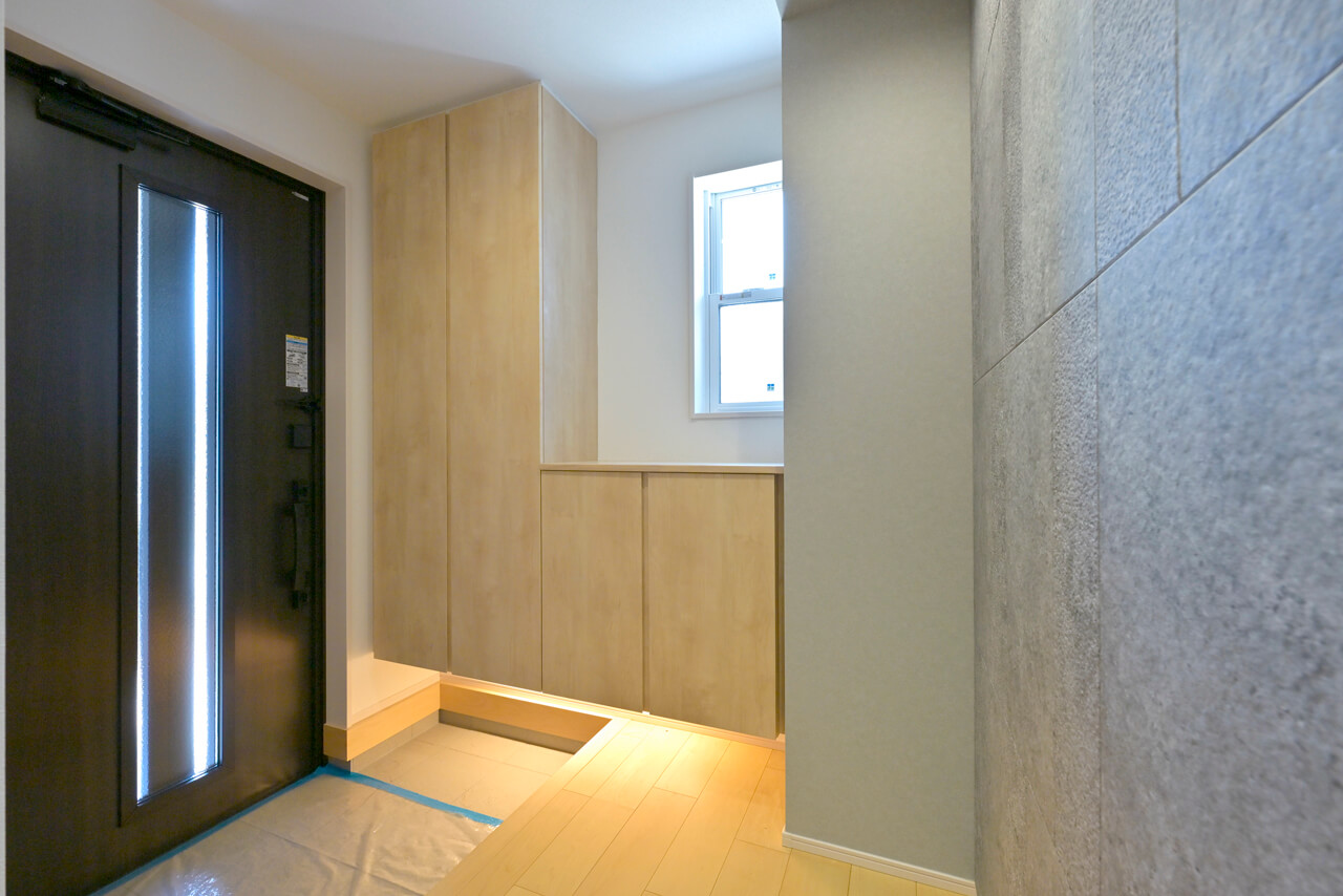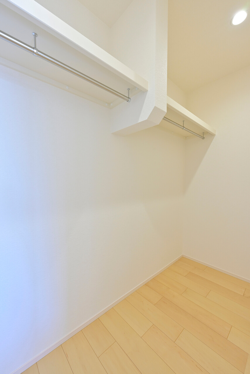 ご夫婦や子ども達の衣類をたっぷりしまえる大容量のウォークインクローゼット。季節の衣類から鞄や帽子などの小物までたっぷり保管可能。ウォークインタイプなので衣類の出し入れや整理整頓もスムーズに行えます。
