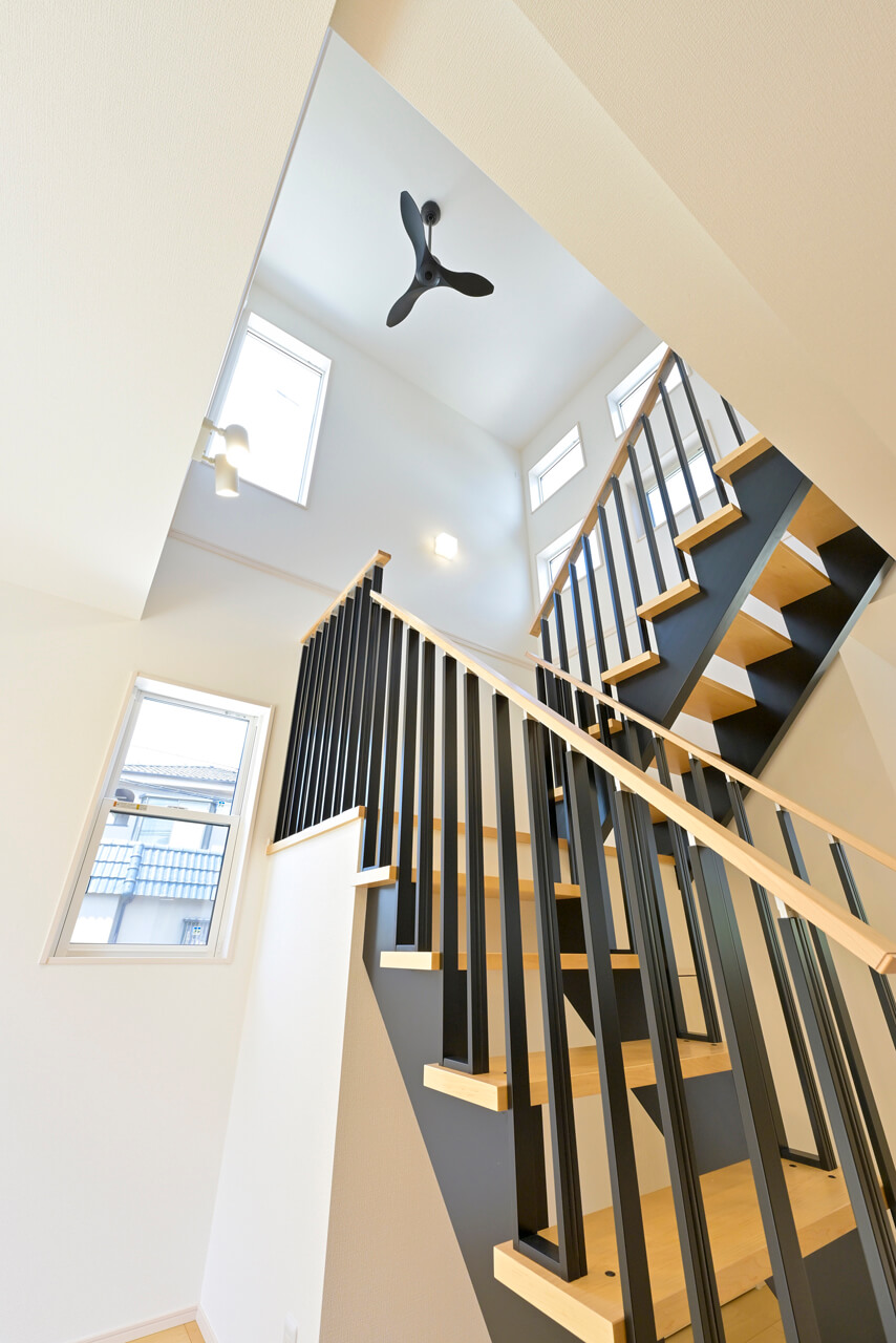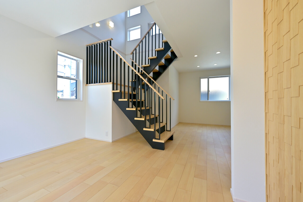 ご家族の団らんや寛ぎの中心となるリビング空間をさらに際立たせる吹抜け天井プラン。2階天井まで続くその圧倒的な存在感と広がりが訪れた方を驚きを持ってお迎えします。大切にしたいご家族やゲストをもてなす上質な空間です。