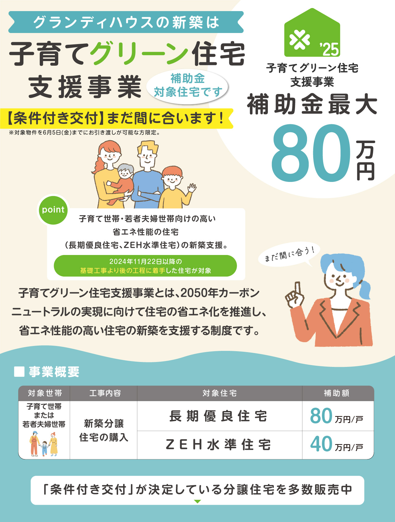 子育てグリーン住宅支援事業|栃木エリア 30件の分譲地、72件のプランが見つかりました。 ※条件付き交付申請物件は、完了検査から1年以内(新築)の契約物件が対象となります。※完了検査から1年以内に売買契約を締結し、完了報告期限(2026.6月末)までに新築住宅の引渡し・入居(謄本取得)を完了させること。※上記の情報は2026年3月現在のものです。※その他詳細につきましては、当社スタッフにお尋ねください。 エリア絞込: すべて 宇都宮市 栃木市 佐野市 鹿沼市 小山市 真岡市 大田原市 那須塩原市 さくら市 下野市 下都賀郡壬生町 すべての物件にチェックを入れる すべてチェック 物件をくらべる まとめて資料請求する 0件の分譲地 物件をくらべる(5件まで) まとめて資料請求する(5件まで) 価格改定 モデルハウス 宇都宮市 東峰町 東峰テラス 47号棟 価格改定|4,499万円 64号棟!子育てグリーン最大80万円対象 いよいよ最終分譲! ご好評につき残り3邸! ◆先進の設備仕様を採用した、全87邸の大型分譲地 ・キッチン洗面タッチレス水栓/1階タンクレストイレ/1階抗ウイルスフロア/宅配ボックス/街区内防犯カメラ/電動シャッター/玄関電子錠 販売戸数:3戸 お気に入り登録人数24人 お気に入り登録 販売価格 4,499万円 (税込) 〜 沿線&最寄り駅 関東バス|東峰町停留所 JR東北本線(宇都宮線)・JR日光線・JR東北新幹線|宇都宮駅 小学校区 石井小学校 土地面積 185.48㎡(56.10坪)〜 200.95㎡(60.78坪) 建物面積 114.33㎡(34.51坪)〜 118.79㎡(35.86坪) 入居予定時期 即入居可、2026年3月下旬 大型分譲地 パノラマ 太陽光発電搭載 即入居可 写真公開・更新 ZEH オール電化 来場予約 資料請求(無料) 電話相談 お問い合わせ グランディハウス 宇都宮東支店 宇都宮市中今泉3丁目1-37 0120842233(発信する) 閉じる 分譲地詳細を見る プラン詳細・間取り(1件) モデルハウス 64号地 季節や天候に左右されにくい室内物干しスペース「コモレビ空間」 販売価格 4,580万円(税込) 土地面積 185.48㎡(56.10坪) 建物面積 118.79㎡(35.86坪) コモレビ空間 マルチカウンター ウォークインクローゼット ただいまクローク リネン庫 パントリー 電動シャッター タッチレス水栓 玄関電子錠 屋外コンセント(EV・PHEV充電用) 駐車場2台以上 モデルハウス 小山市 間々田 グランエクセラ小山市間々田7期 5・6・16号棟|子育てグリーン最大80万円対象物件 【室内の水全てがウルトラファインバブル】 個性と品格を纏う上質な外観デザイン 【長期優良住宅認定 ✕ K3制震ダンパー採用】 静けさに包まれた街並みで、活気あふれる暮らしを送るためのアイデアプラン〈18邸〉、誕生 ◆街区内道路とワンエントランスがつなぐ、安心の18邸 ◆モノクロを基調に自然の質感を取り入れることで落ち着きと品格を演出する外観デザイン ◆最も規制の厳しい「第一種低層住居専用地域」が、空の広さを永く保証 販売戸数:11戸 お気に入り登録人数人 お気に入り登録 販売価格 2,830万円 (税込) 〜 沿線&最寄り駅 JR東北本線(宇都宮線)|間々田駅 約3,200m 〜 約3,300m 小山市コミュニティバス|千駄塚公民館停留所 徒歩 4分( 約300m ) 〜 徒歩 5分( 約400m ) 小学校区 間々田小学校 土地面積 180.11㎡(54.48坪)〜 180.42㎡(54.57坪) 建物面積 105.98㎡(32.00坪)〜 107.92㎡(32.58坪) 入居予定時期 即入居可、2026年4月中旬、2026年5月下旬、2026年7月中旬 動画 即入居可 写真公開・更新 オール電化 来場予約 資料請求(無料) 電話相談 お問い合わせ グランディハウス 県南支社 小山市東城南5丁目1番地9 0120785060(発信する) 閉じる 分譲地詳細を見る プラン詳細・間取り(3件) モデルハウス 動画 16号地 日中は軽食や家事スペースに、夜はバーカウンターにもなるキッチン前のカウンター 販売価格 お問い合わせください 土地面積 180.21㎡(54.51坪) 建物面積 105.98㎡(32.00坪) キッチン前カウンター LDK18帖以上 広々エントランス 2階フレキシブル フリースペース シューズクローク 階段下収納 ウォークインクローゼット リネン庫 パントリー 電動シャッター 制震ダンパー「K3」 玄関電子錠 駐車場2台以上 角地 5号地 自分のものを個別にしまえる「ファミリーロッカー」。お子様の片付け習慣も身につきます 販売価格 お問い合わせください 土地面積 180.25㎡(54.52坪) 建物面積 106.40㎡(32.12坪) 家事動線 2階フレキシブル シューズクローク ウォークインクローゼット リネン庫 パントリー 電動シャッター 玄関電子錠 制震ダンパー「K3」 南面道路 駐車場2台以上 6号地 1階ホールからも入れる2wayの畳敷部屋は、来客の応接間としても活躍 販売価格 お問い合わせください 土地面積 180.25㎡(54.52坪) 建物面積 107.39㎡(32.42坪) 家事動線 シューズクローク ウォークインクローゼット リネン庫 パントリー 電動シャッター 玄関電子錠 制震ダンパー「K3」 南面道路 駐車場2台以上 新着 モデルハウス 宇都宮市 江曽島三丁目 グランドステージ江曽島21期 9号棟!子育てグリーン最大40万円対象 ◆街区内に新設公園を設けた全31邸の大型分譲地 ◆オープンキッチンやLDK吹抜を採用した、集いとくつろぎを描く邸別プラ