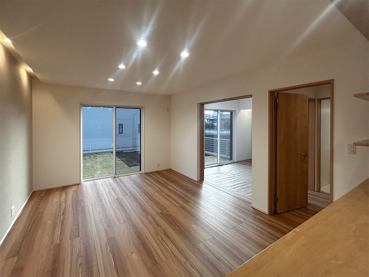 閉じる LDK18帖以上 リビングという暮らしのメインスペースは、一日で家族が一番長く過ごす場所。その居心地をさらに高めるために18帖以上のワイドな広さを確保しました。広場のようなパブリックスペースがご家族の集いや団らんを心地よく育みます。