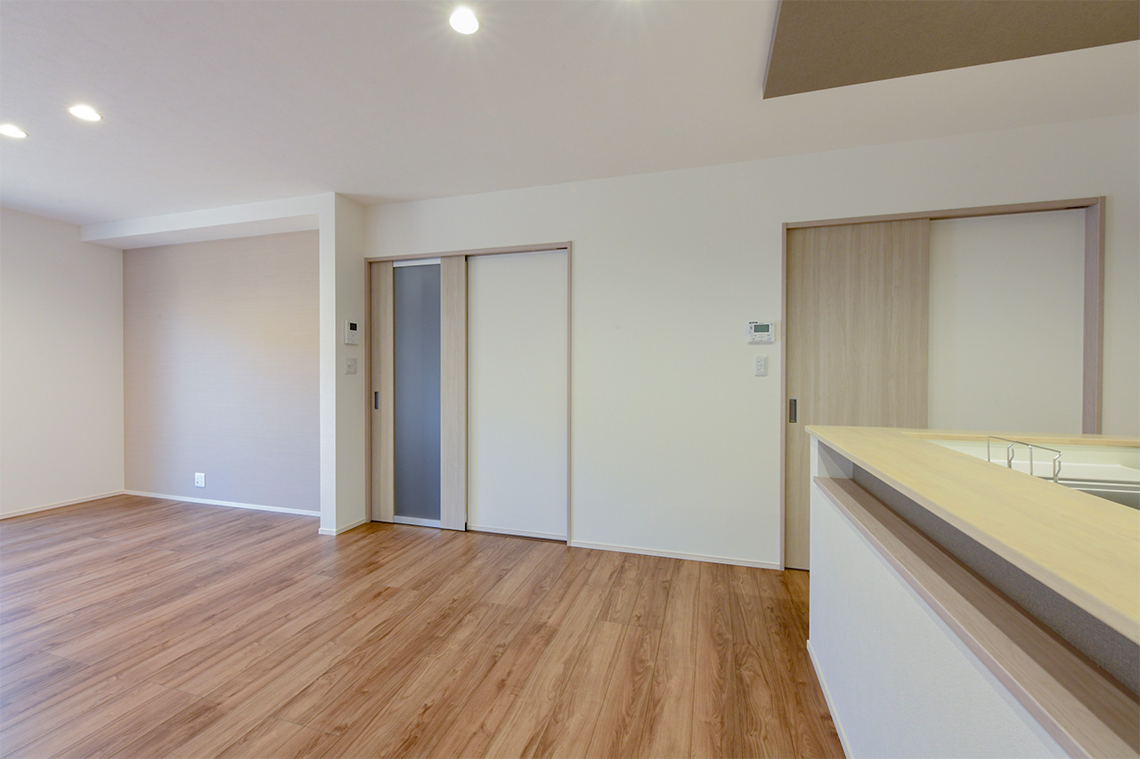 ご夫婦や子ども達の衣類をたっぷりしまえる大容量のウォークインクローゼット。季節の衣類から鞄や帽子などの小物までたっぷり保管可能。ウォークインタイプなので衣類の出し入れや整理整頓もスムーズに行えます。