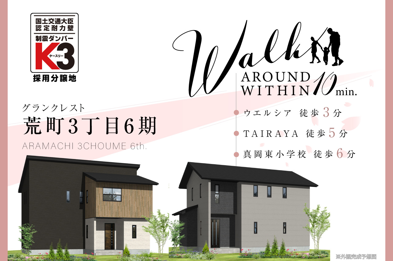 - 分譲地から各施設への距離・徒歩時間は、GoogleMapの徒歩ルートを基に徒歩1分=80mにて算出しています。