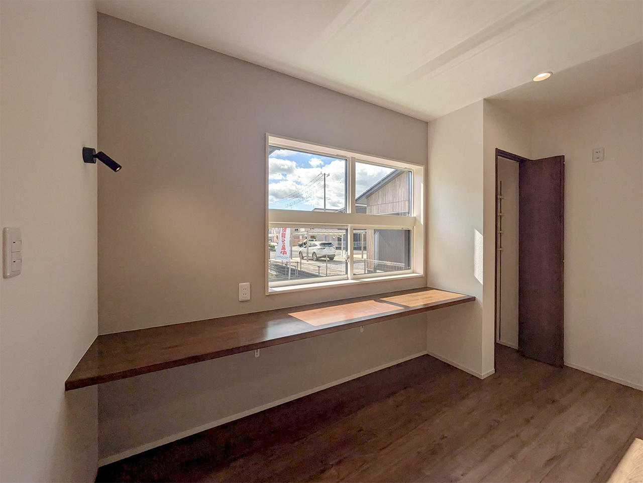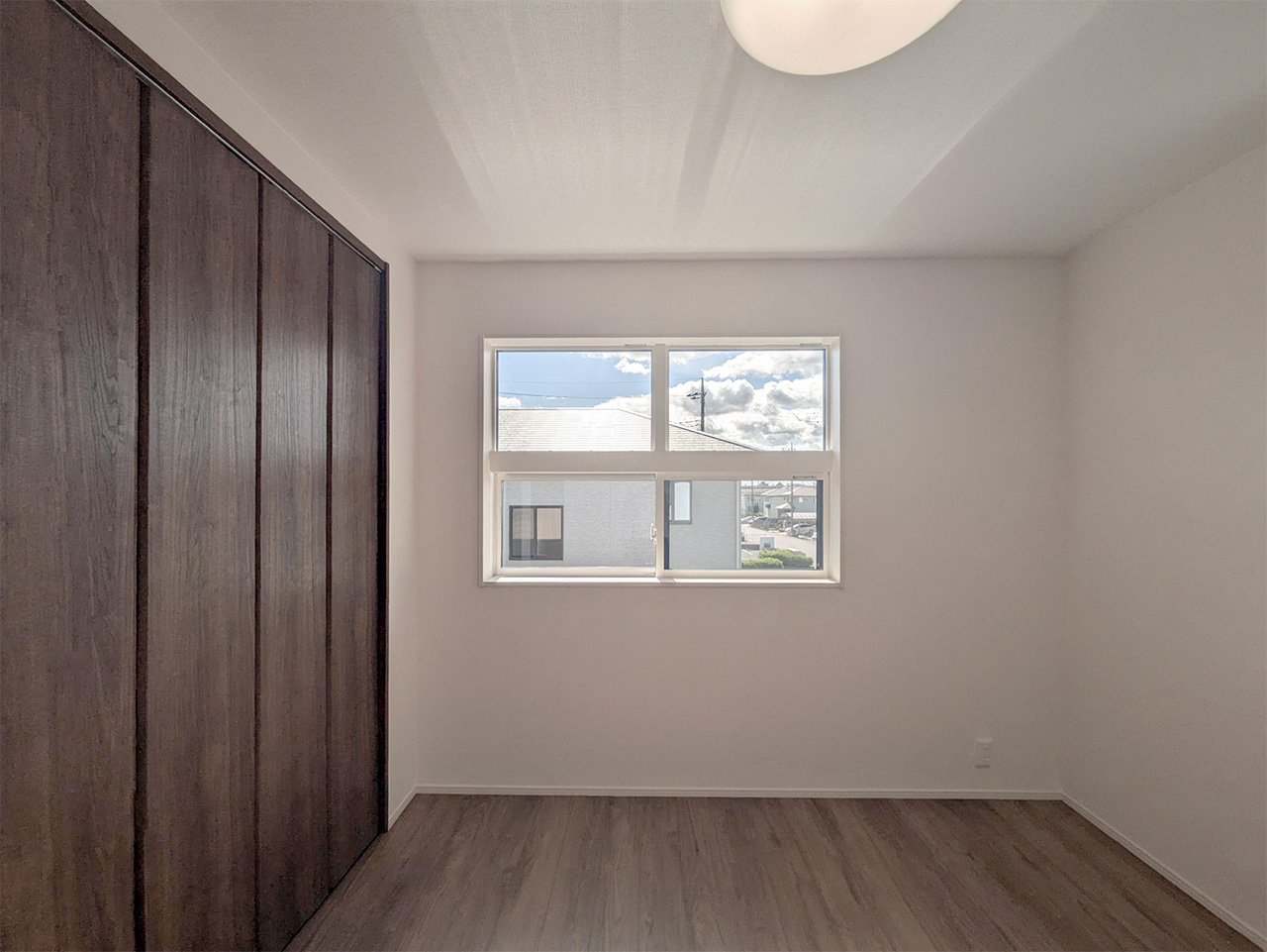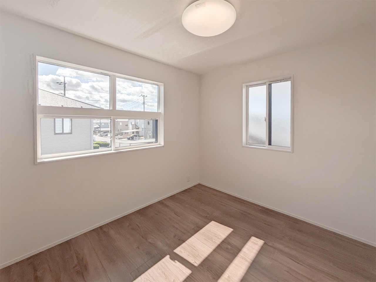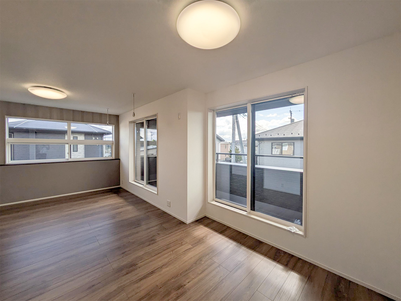 2つの空間に間仕切り可能な、広々とした2階2ドア1ルーム。子供が生まれる前、赤ちゃんが生まれてから、そして大きくなって個室を持つようになるまで対応。子ども達が独立したら広々としたご夫婦の書斎や趣味の部屋にも。ご家族の成長といっしょに変わっていく自由な家づくりが可能です。※間仕切り壁の設置は有料オプションとなります。