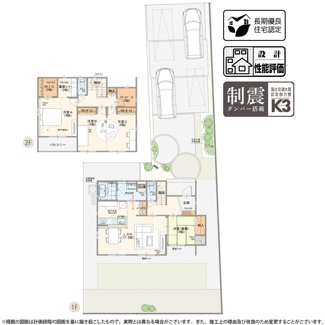 ※掲載の図面は計画段階の図面を基に描き起こしたもので、実際とは異なる場合がございます。また、施工上の理由及び改良のため変更することがございます。建売分譲住宅