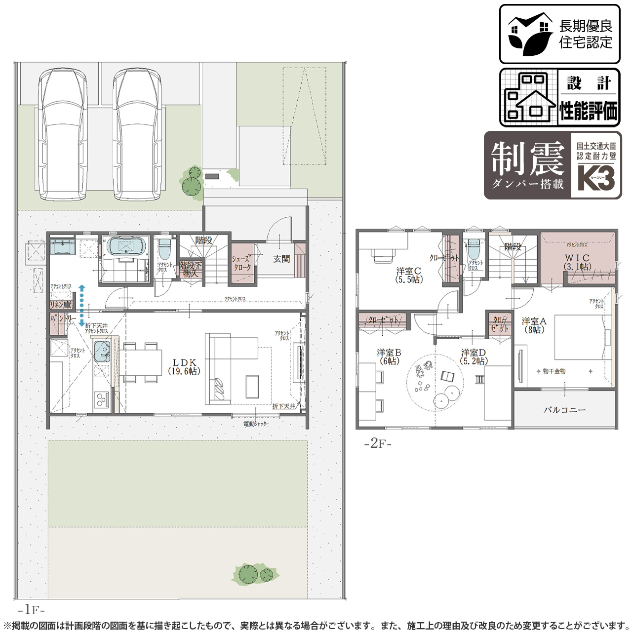 ※掲載の図面は計画段階の図面を基に描き起こしたもので、実際とは異なる場合がございます。また、施工上の理由及び改良のため変更することがございます。建売分譲住宅