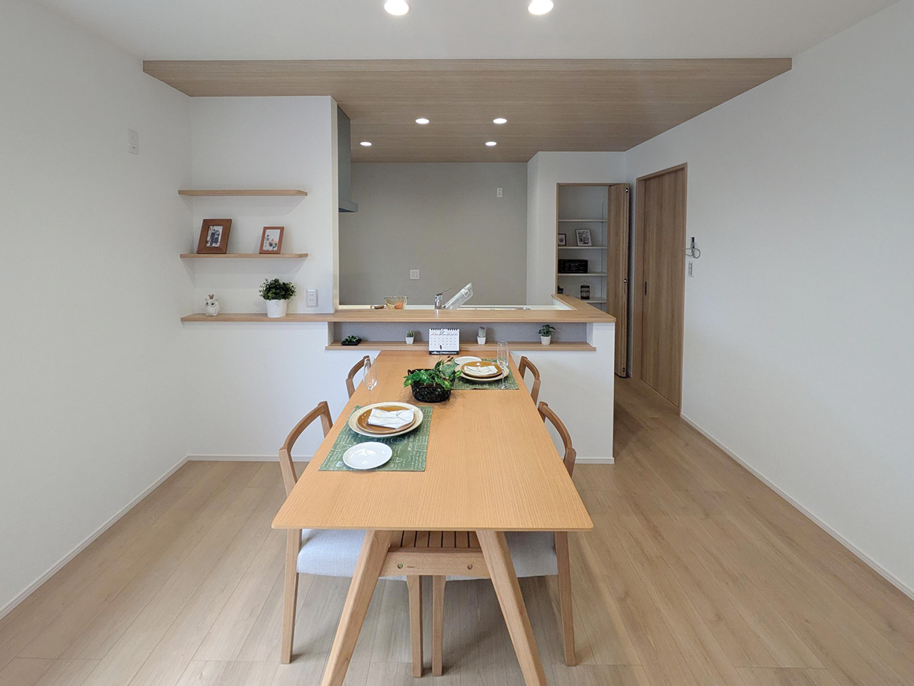 リビングという暮らしのメインスペースは、一日で家族が一番長く過ごす場所。その居心地をさらに高めるために18帖以上のワイドな広さを確保しました。広場のようなパブリックスペースがご家族の集いや団らんを心地よく育みます。