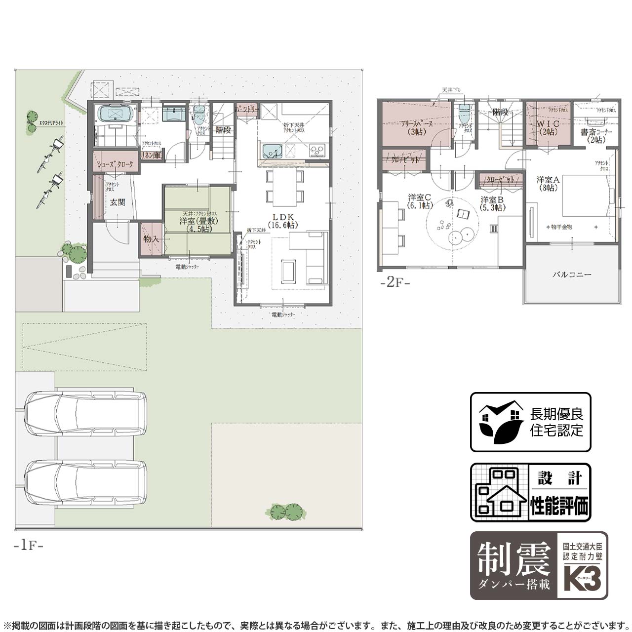 ※掲載の図面は計画段階の図面を基に描き起こしたもので、実際とは異なる場合がございます。また、施工上の理由及び改良のため変更することがございます。建売分譲住宅