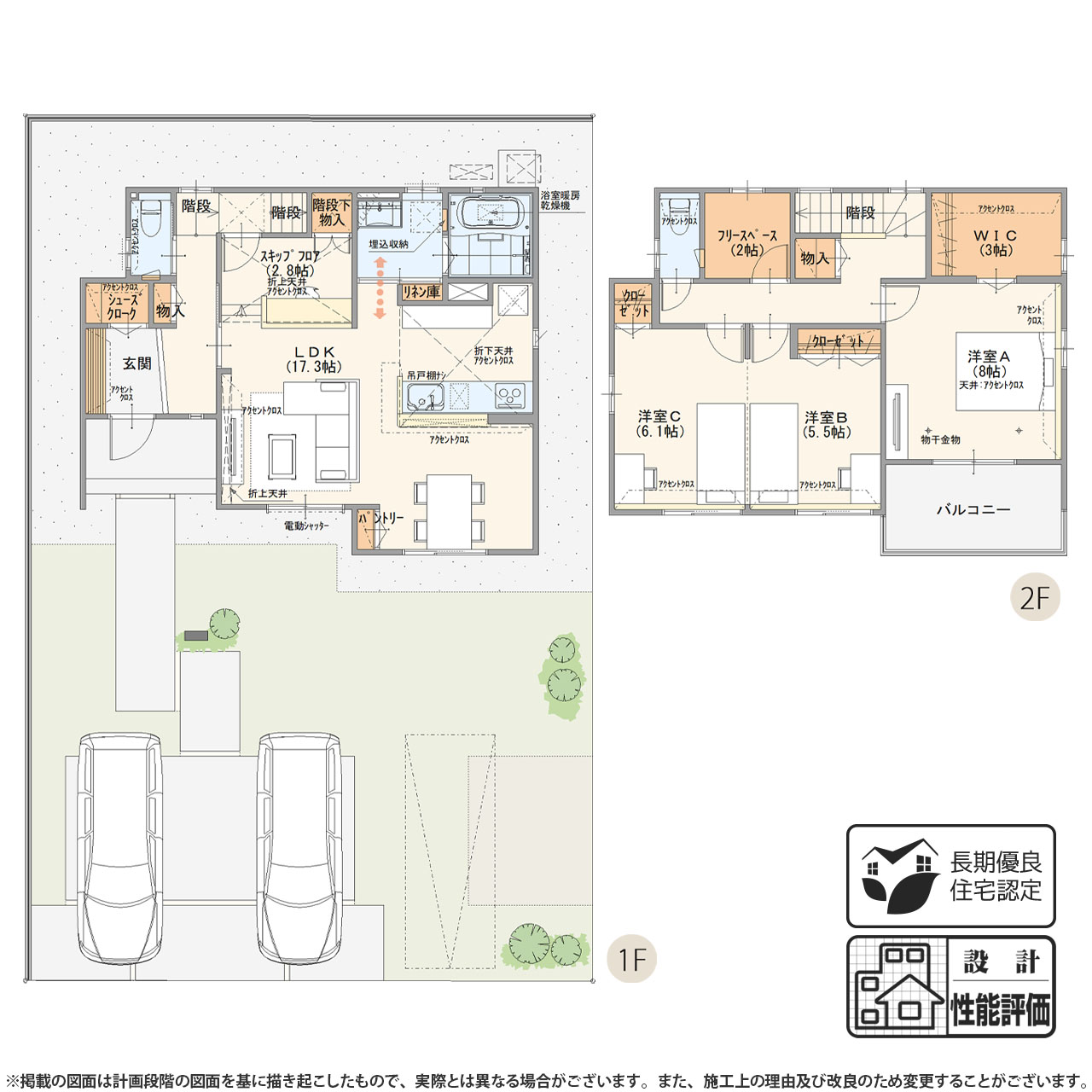 通勤やレジャーなど、ライフスタイルを広げてくれるカースペースを2台分確保しました。来客用の駐車スペースとしても最適です。