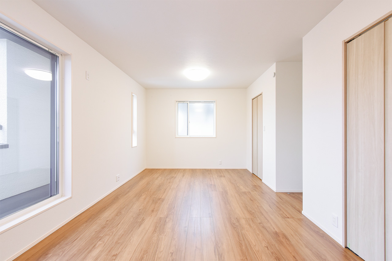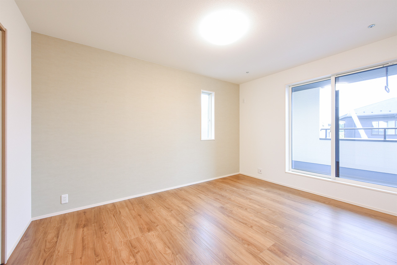 2つの空間に間仕切り可能な、広々とした2階2ドア1ルーム。子供が生まれる前、赤ちゃんが生まれてから、そして大きくなって個室を持つようになるまで対応。子ども達が独立したら広々としたご夫婦の書斎や趣味の部屋にも。ご家族の成長といっしょに変わっていく自由な家づくりが可能です。※間仕切り壁の設置は有料オプションとなります。