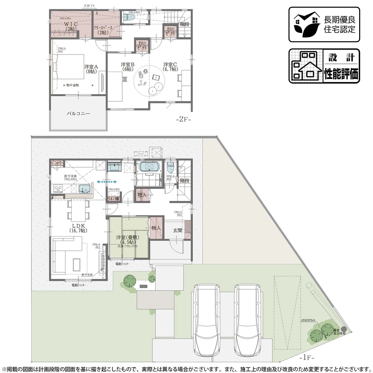 通勤やレジャーなど、ライフスタイルを広げてくれるカースペースを2台分確保しました。来客用の駐車スペースとしても最適です。