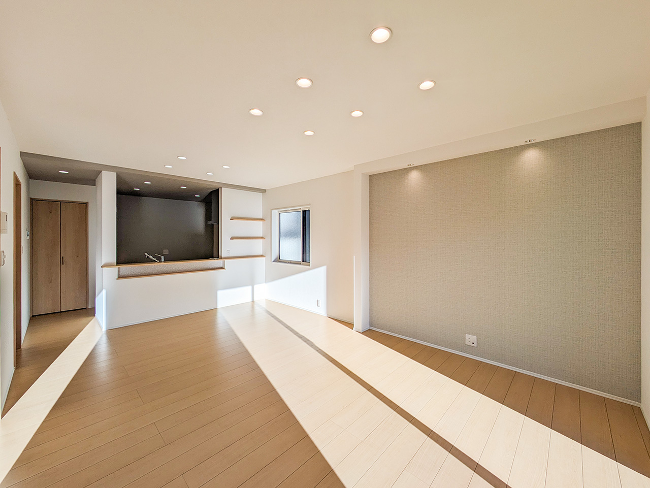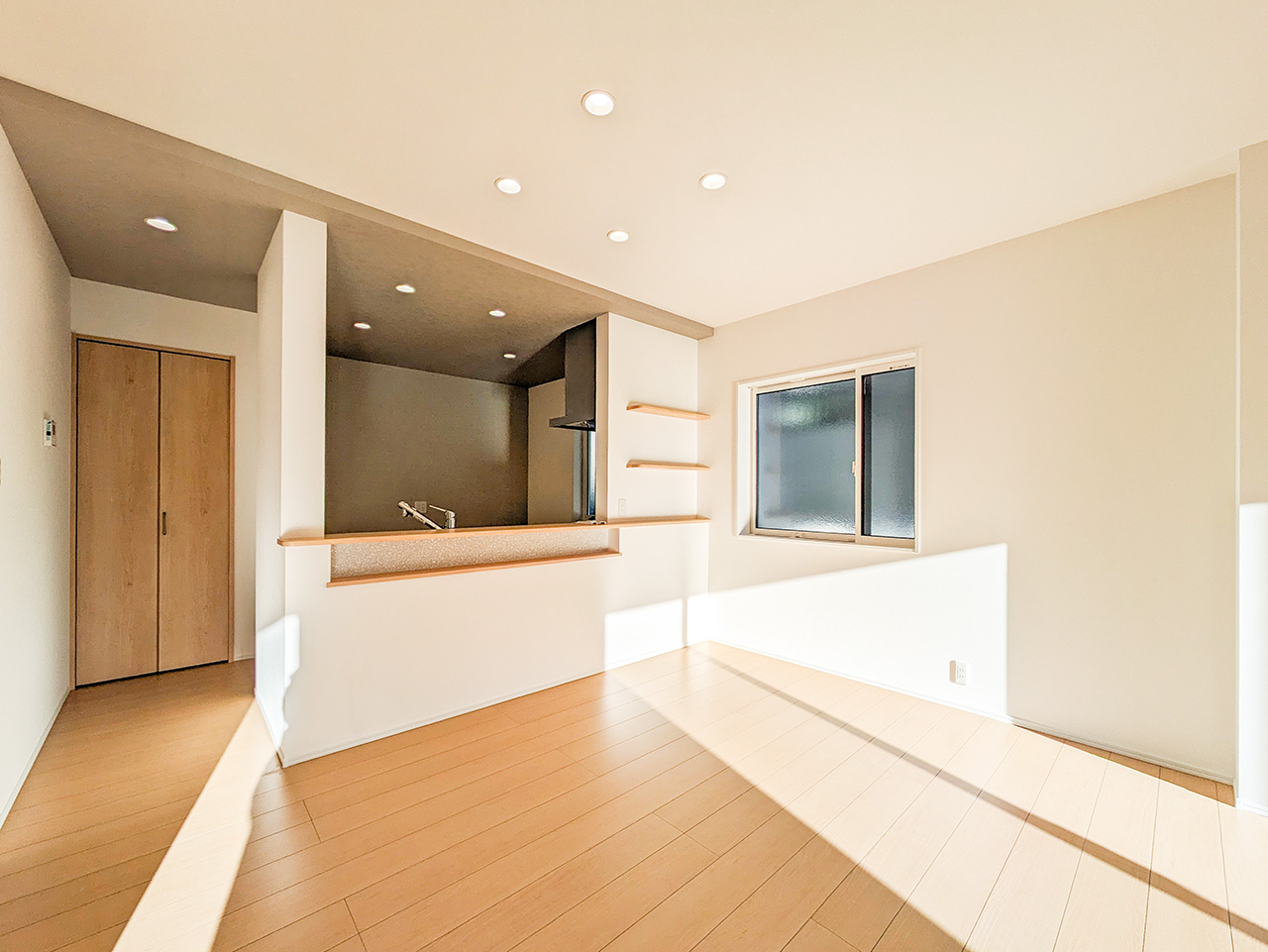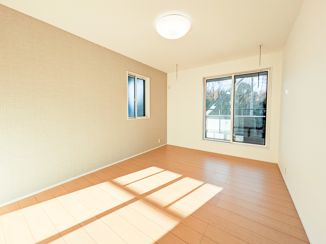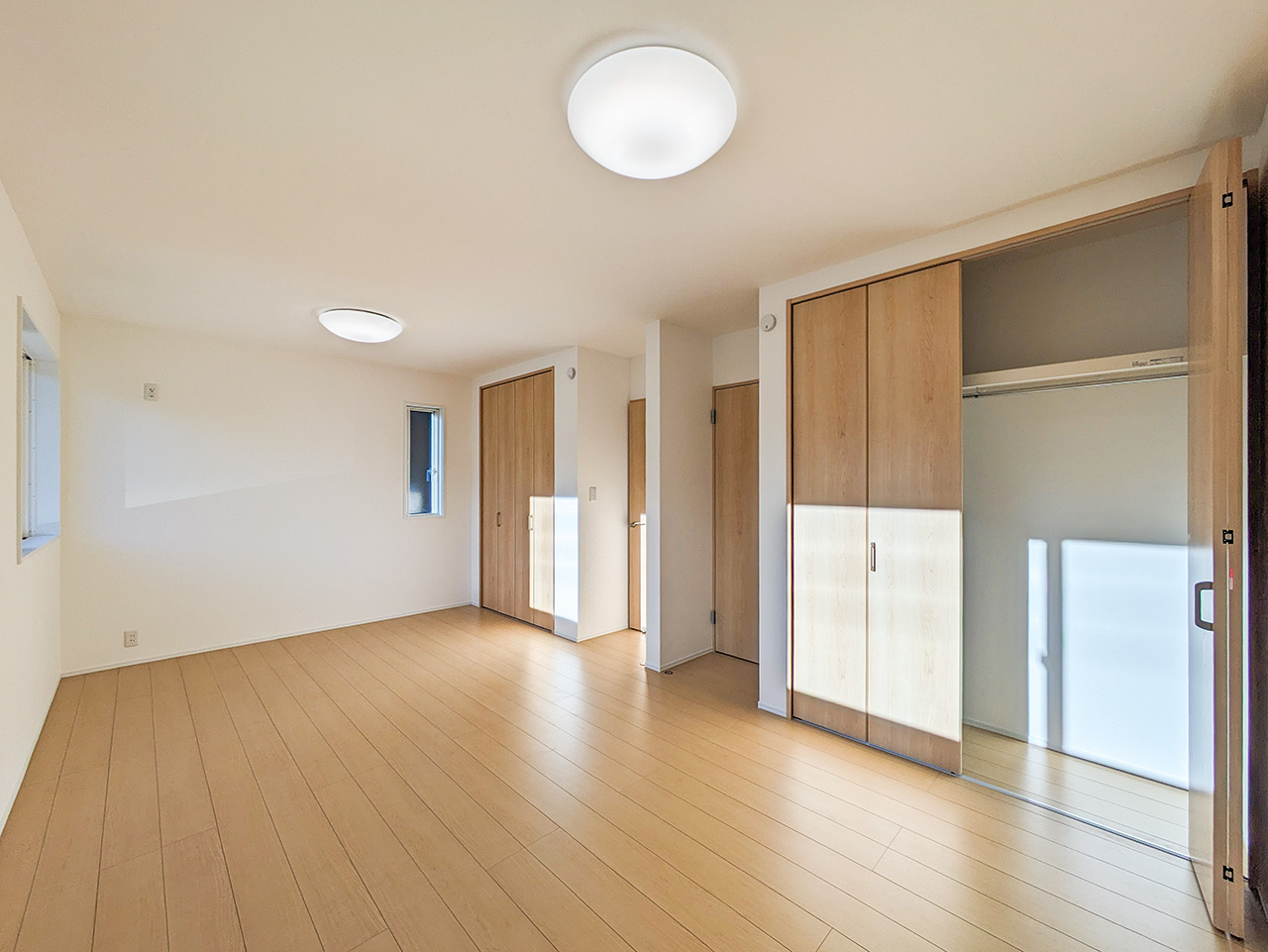 2つの空間に間仕切り可能な、広々とした2階2ドア1ルーム。子供が生まれる前、赤ちゃんが生まれてから、そして大きくなって個室を持つようになるまで対応。子ども達が独立したら広々としたご夫婦の書斎や趣味の部屋にも。ご家族の成長といっしょに変わっていく自由な家づくりが可能です。※間仕切り壁の設置は有料オプションとなります。