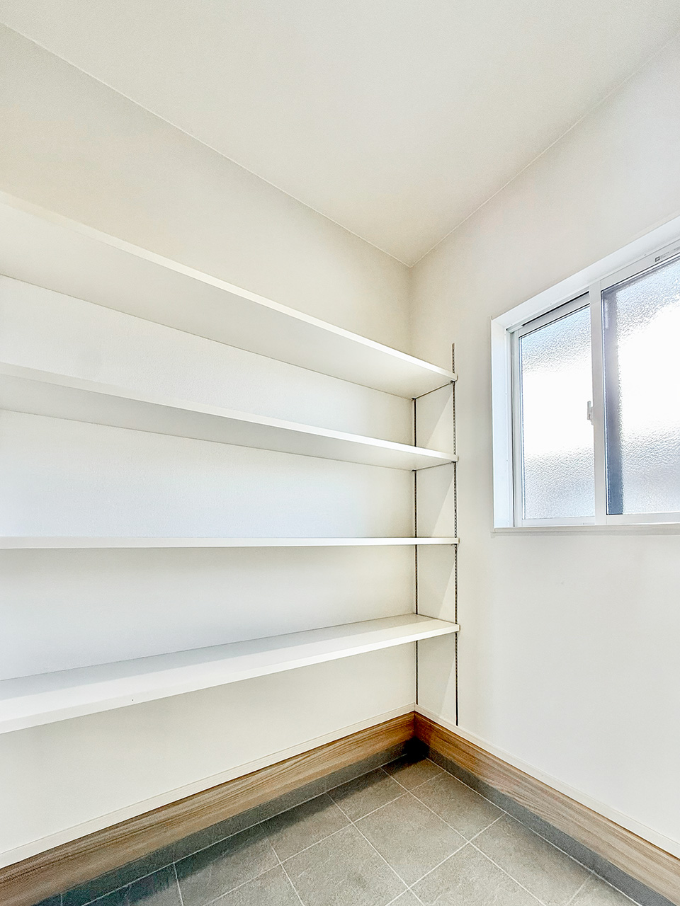 ご夫婦や子ども達の衣類をたっぷりしまえる大容量のウォークインクローゼット。季節の衣類から鞄や帽子などの小物までたっぷり保管可能。ウォークインタイプなので衣類の出し入れや整理整頓もスムーズに行えます。