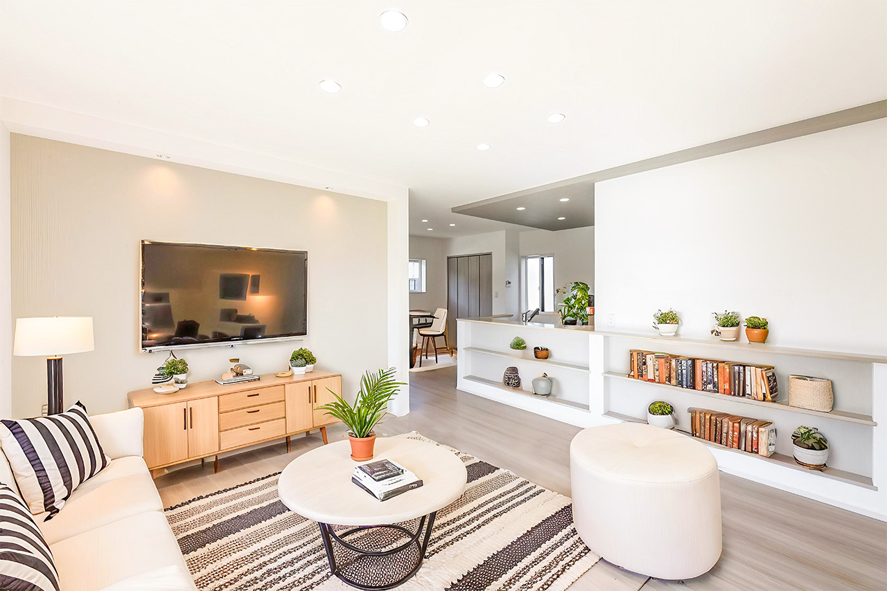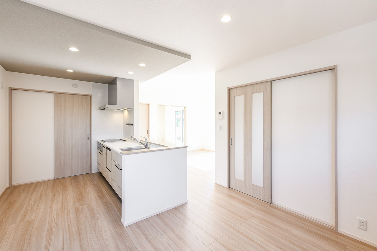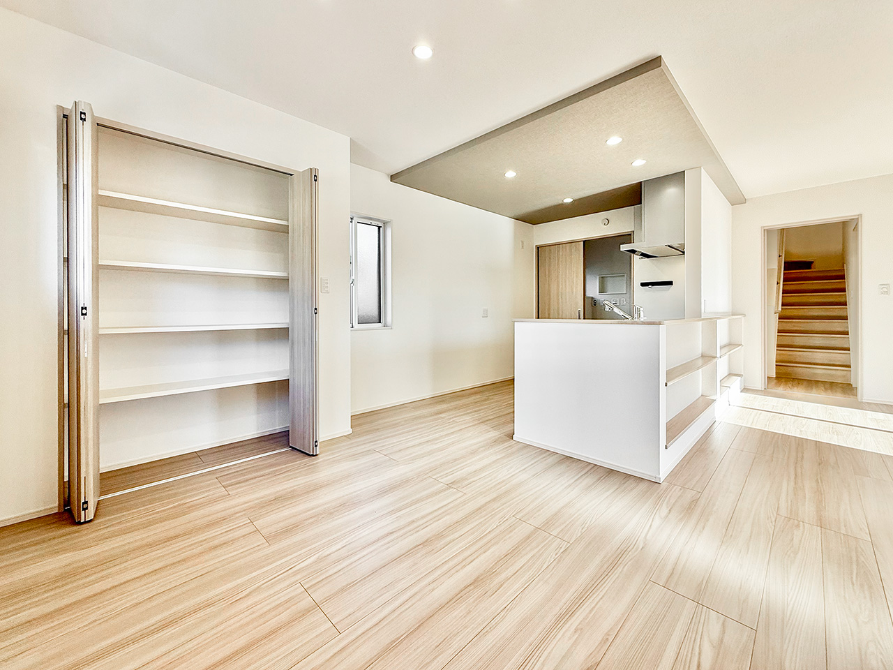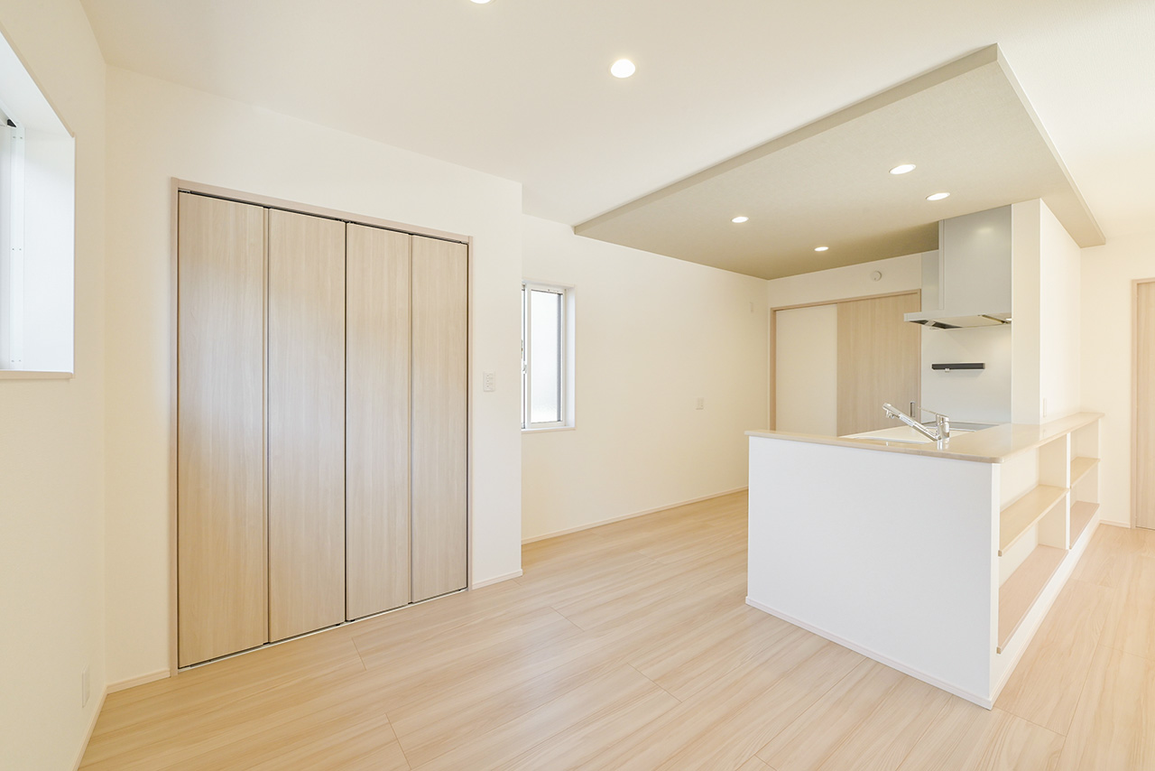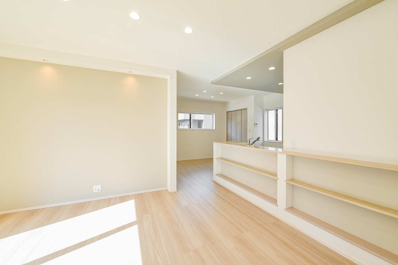 リビングという暮らしのメインスペースは、一日で家族が一番長く過ごす場所。その居心地をさらに高めるために18帖以上のワイドな広さを確保しました。広場のようなパブリックスペースがご家族の集いや団らんを心地よく育みます。