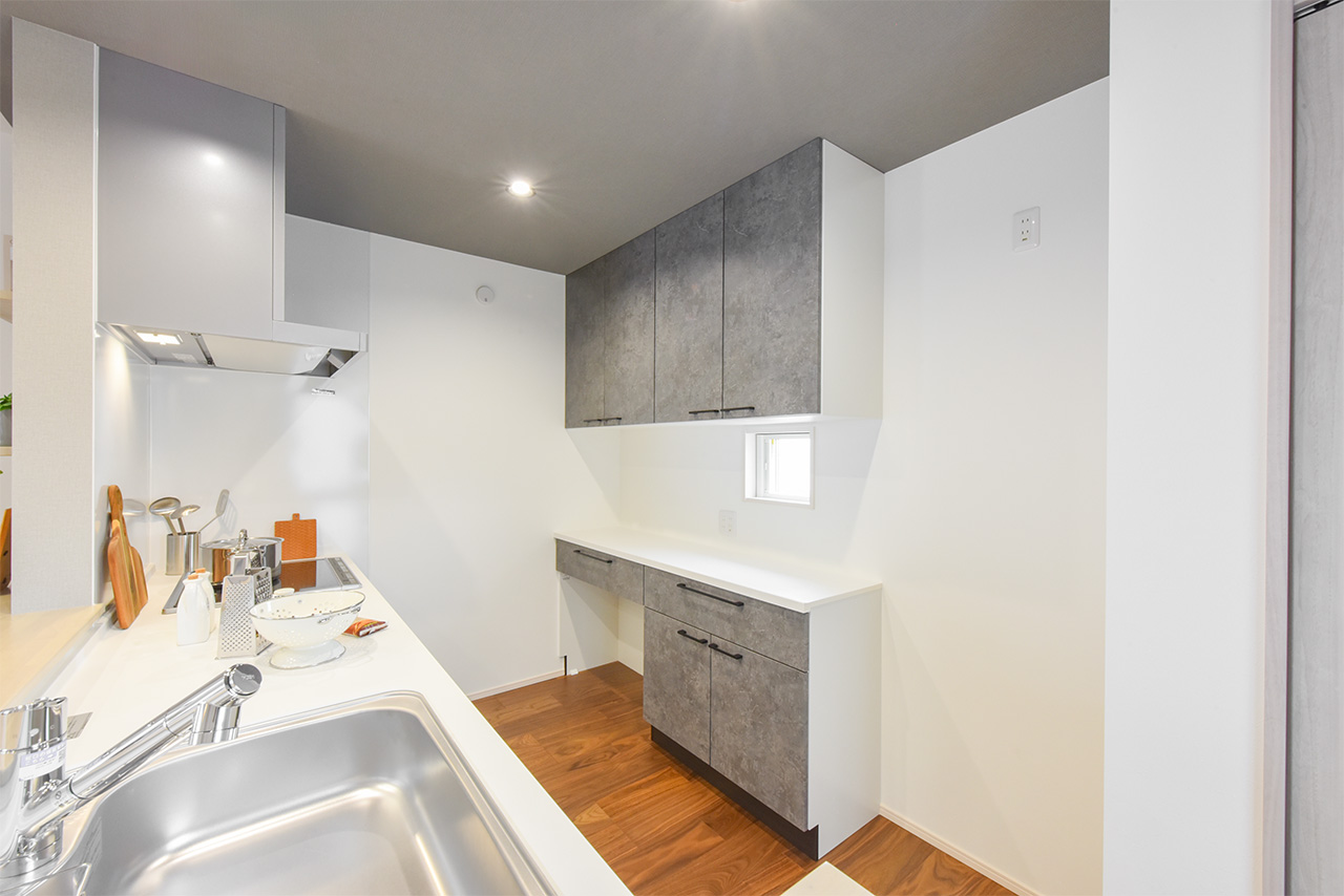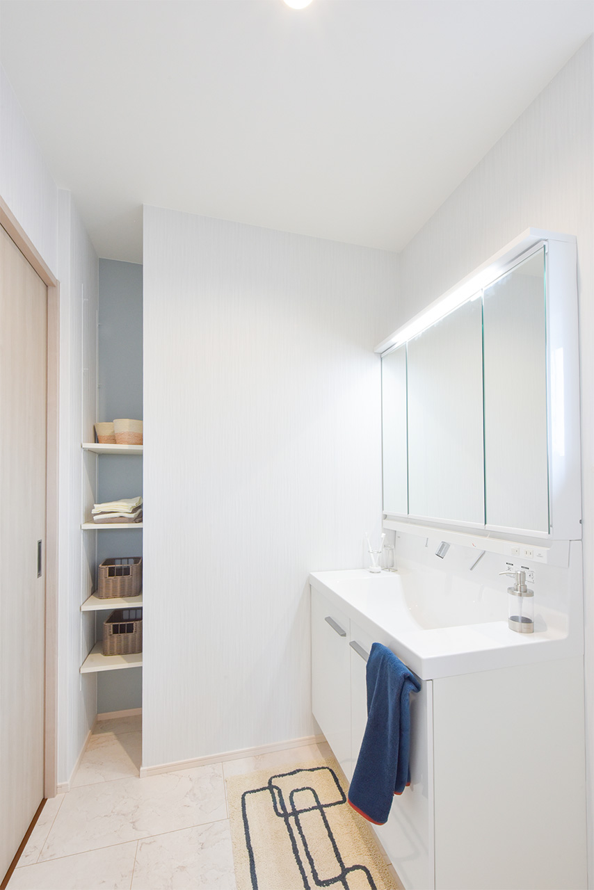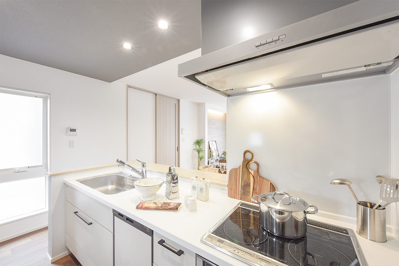 リビングという暮らしのメインスペースは、一日で家族が一番長く過ごす場所。その居心地をさらに高めるために18帖以上のワイドな広さを確保しました。広場のようなパブリックスペースがご家族の集いや団らんを心地よく育みます。