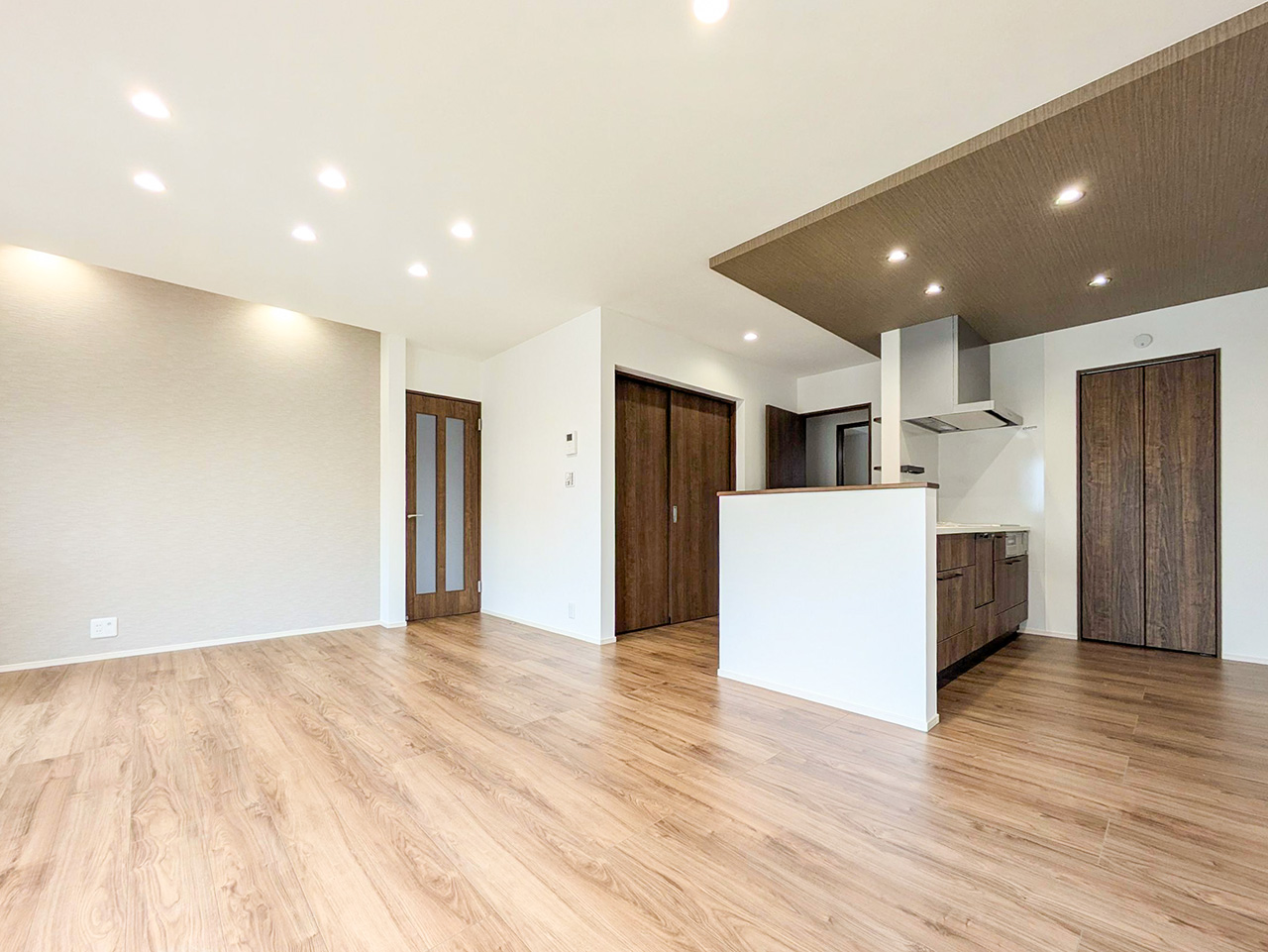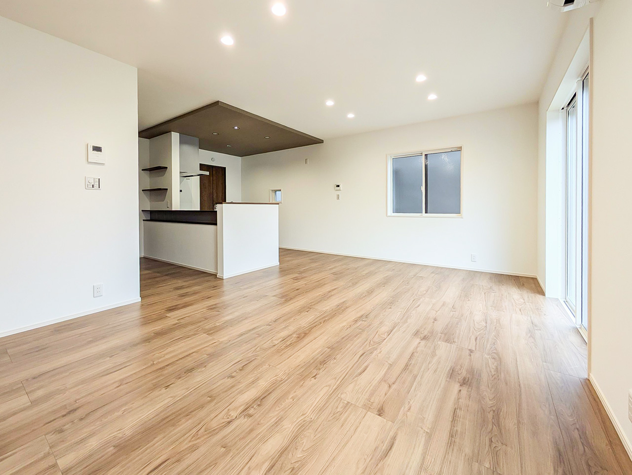 閉じる LDK18帖以上 リビングという暮らしのメインスペースは、一日で家族が一番長く過ごす場所。その居心地をさらに高めるために18帖以上のワイドな広さを確保しました。広場のようなパブリックスペースがご家族の集いや団らんを心地よく育みます。