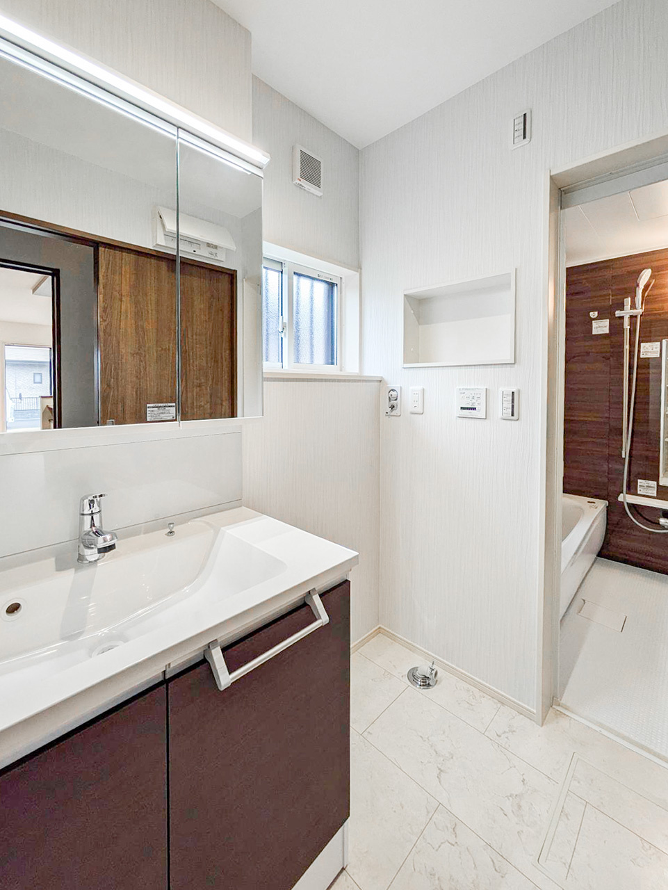 浴室換気暖房乾燥機 雨の日も気にせず洗濯物が浴室内に干せる浴室換気乾燥暖房機を標準装備。時間も天気も気にせず干せるからとても便利。また、浴室のジメジメした環境から発生するカビも抑えることができます。