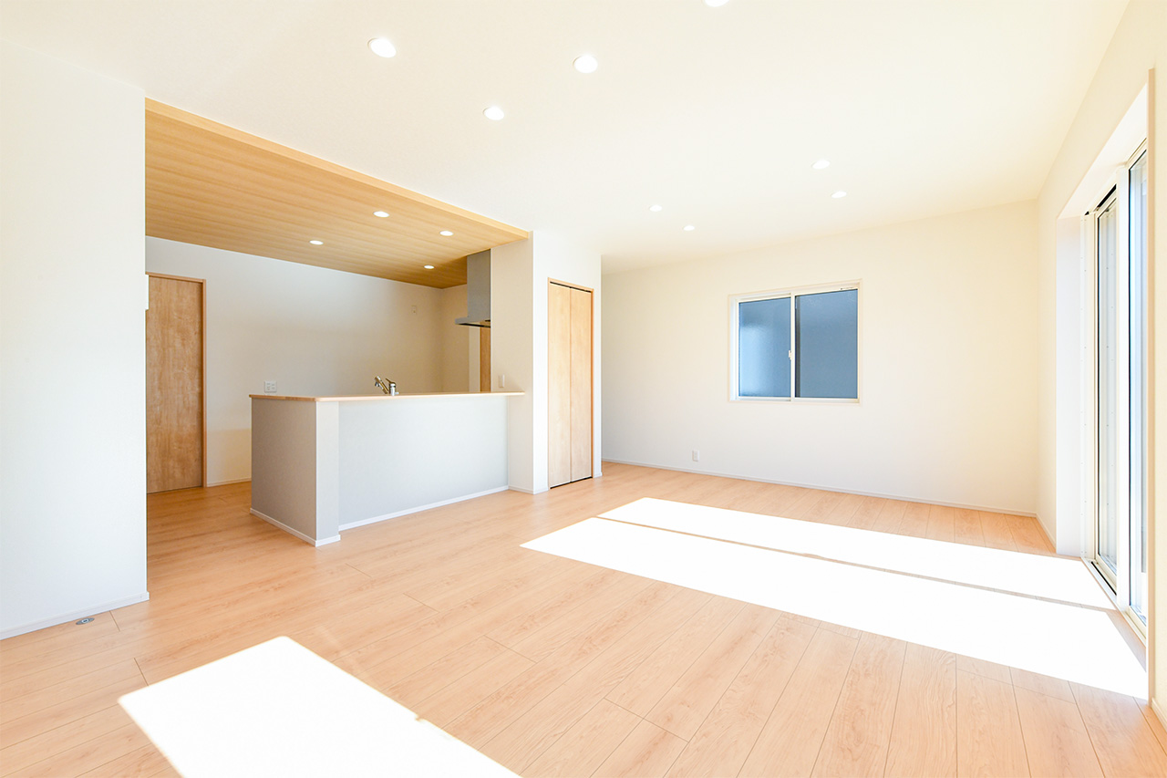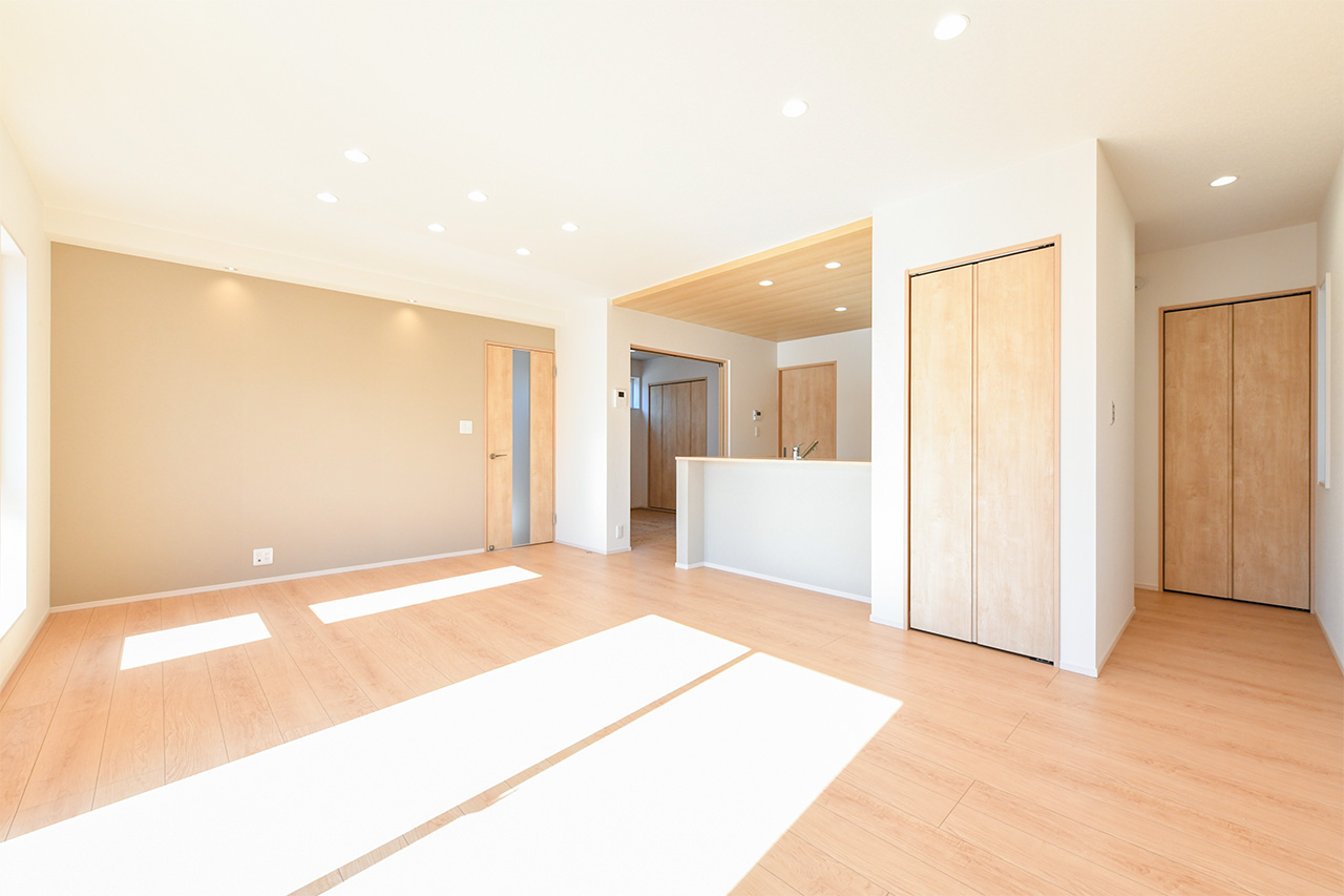 リビングという暮らしのメインスペースは、一日で家族が一番長く過ごす場所。その居心地をさらに高めるために18帖以上のワイドな広さを確保しました。広場のようなパブリックスペースがご家族の集いや団らんを心地よく育みます。