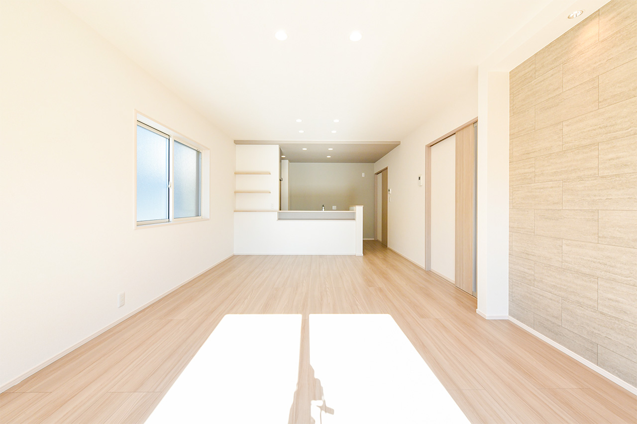 1階・2階のホールやリビングのそばに、用途やライフスタイルに合わせて自由にお使いいただける大容量の収納スペースをご用意しました。季節の衣類から鞄などの小物まで、たっぷりまとめて収納できます。