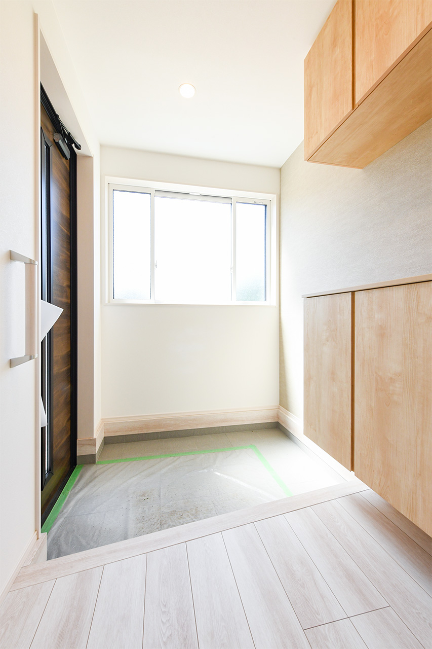 玄関ホールのそばに設けたクローゼットスペース。お出かけ用の上着やコート、レインウェアをはじめ、帽子や鞄などをまとめて収納できます。居住空間への花粉やウイルスなどの持ち込みを低減し、子ども達のお片付け習慣も自然と身につきます。