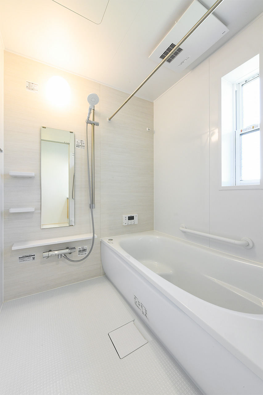 雨の日も気にせず洗濯物が浴室内に干せる浴室換気乾燥暖房機を標準装備。時間も天気も気にせず干せるからとても便利。また、浴室のジメジメした環境から発生するカビも抑えることができます。