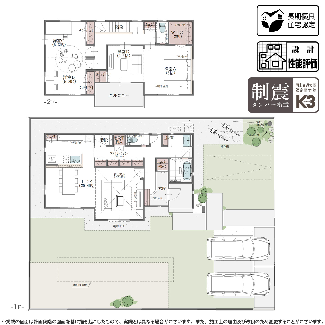 通勤やレジャーなど、ライフスタイルを広げてくれるカースペースを2台分確保しました。来客用の駐車スペースとしても最適です。