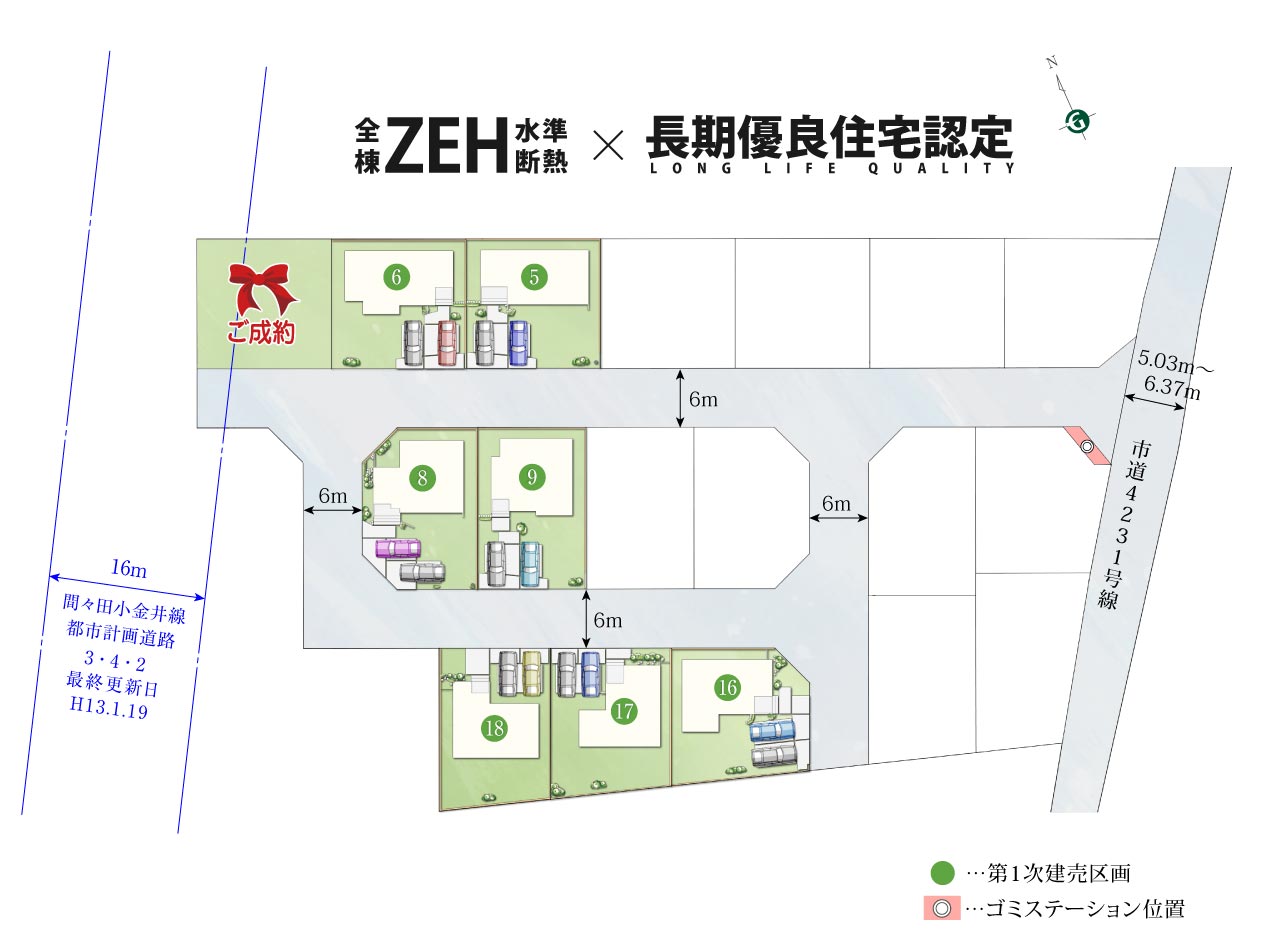 | 備考2 | ※各号地の上空を電線が通過します。 ※掲載の図面は計画段階の図面を基に描き起こしたもので、実際とは異なる場合がございます。また、施工上の理由及び改良のため変更することがございます。 ※[お支払いシミュレーション18号地の場合] 頭金0円、足利銀行(3年固定金利0.575%・40年)で2,830万円借入。 月々66,012円(元本2,830万円)。 金利等は2025年11月現在のものです。諸経費は別途となります。 |