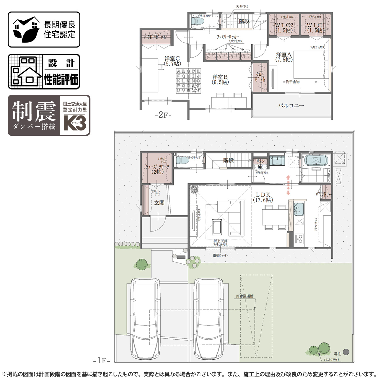 通勤やレジャーなど、ライフスタイルを広げてくれるカースペースを2台分確保しました。来客用の駐車スペースとしても最適です。