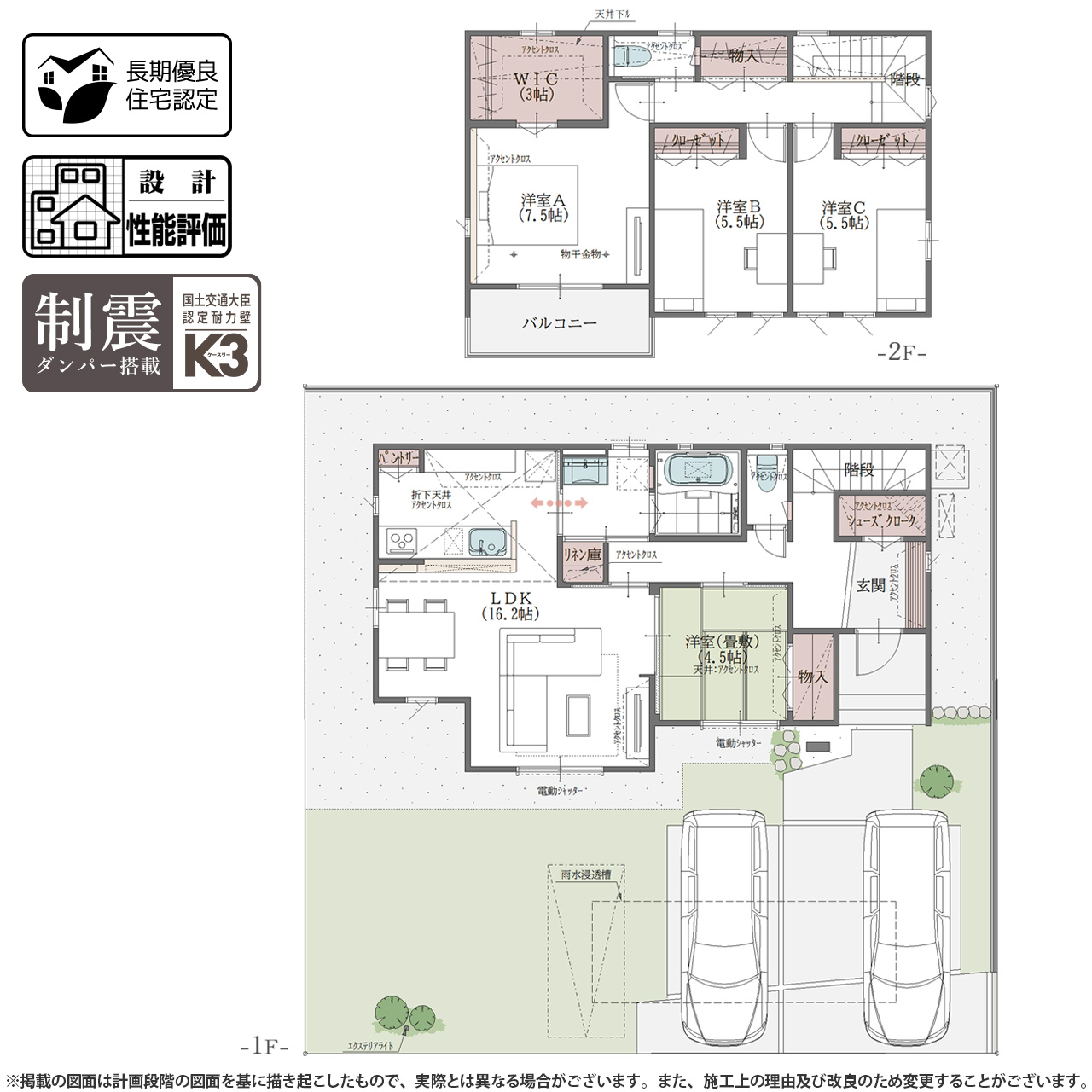 通勤やレジャーなど、ライフスタイルを広げてくれるカースペースを2台分確保しました。来客用の駐車スペースとしても最適です。