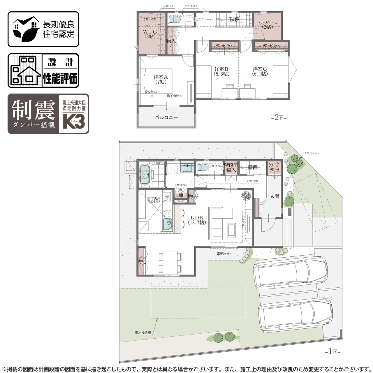 ※掲載の図面は計画段階の図面を基に描き起こしたもので、実際とは異なる場合がございます。また、施工上の理由及び改良のため変更することがございます。建売分譲住宅