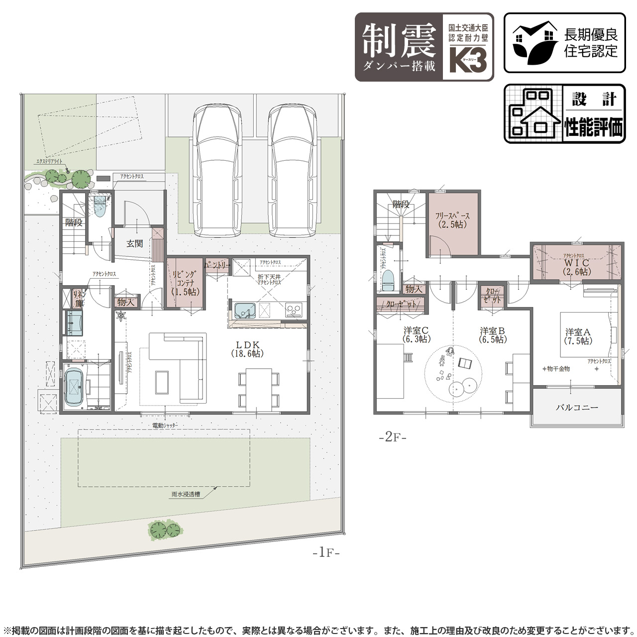 通勤やレジャーなど、ライフスタイルを広げてくれるカースペースを2台分確保しました。来客用の駐車スペースとしても最適です。