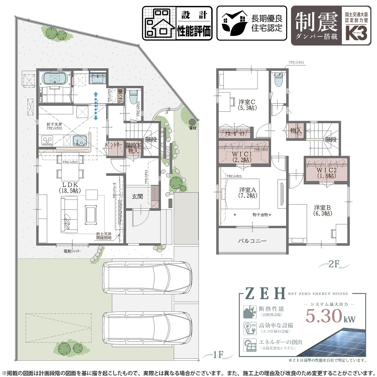 ※掲載の図面は計画段階の図面を基に描き起こしたもので、実際とは異なる場合がございます。また、施工上の理由及び改良のため変更することがございます。建売分譲住宅