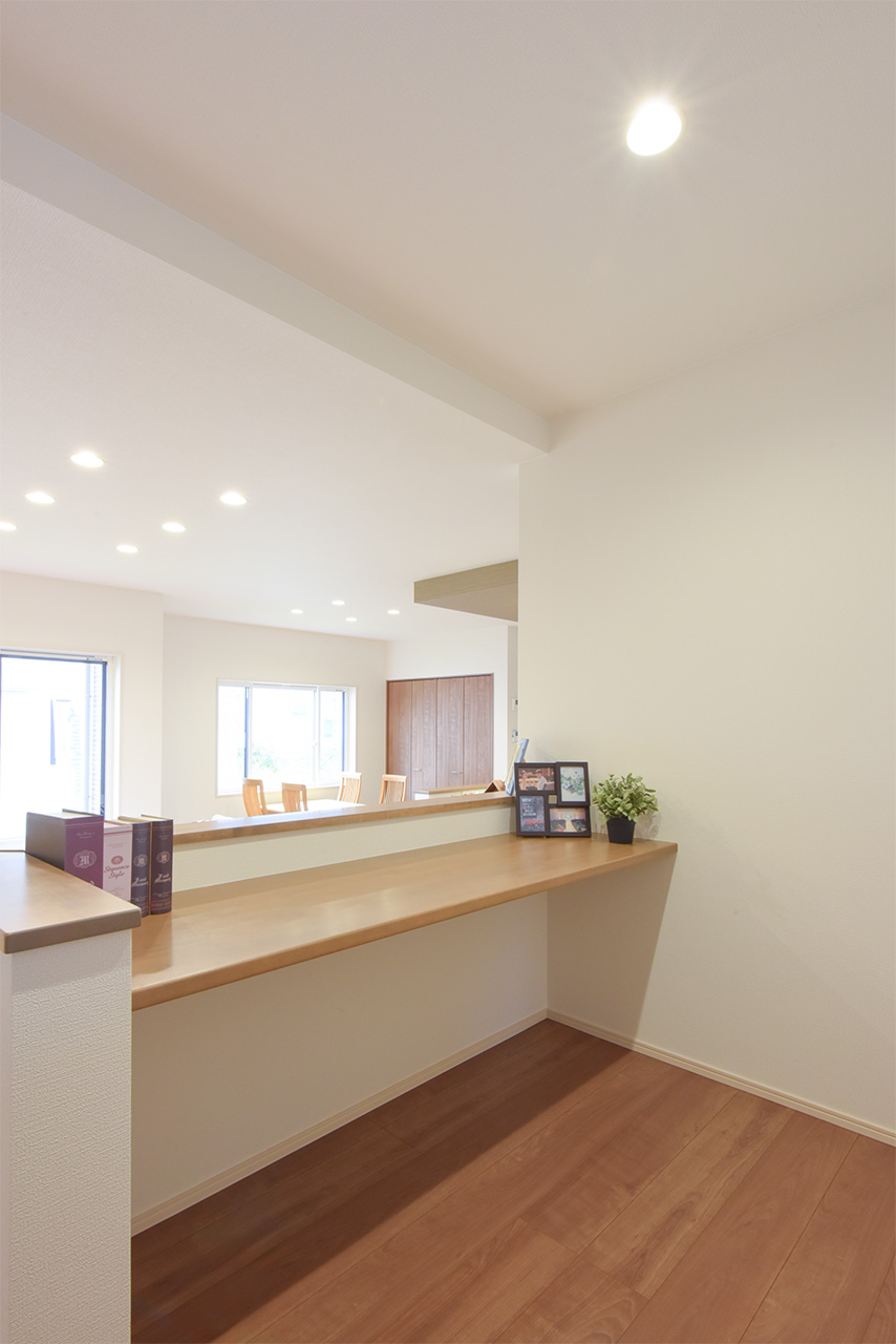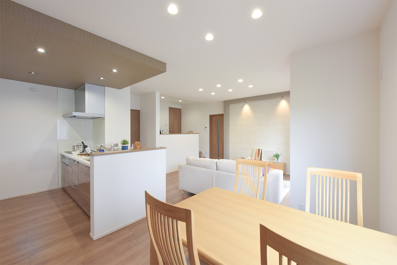 2階へ向かう際に、自然とリビングを通るよう設計された「リビングアクセス階段」。2階のプライベートな空間とパブリックなLDKを程よい距離感で結び、親子のコミュニケーションを優しく後押しします。