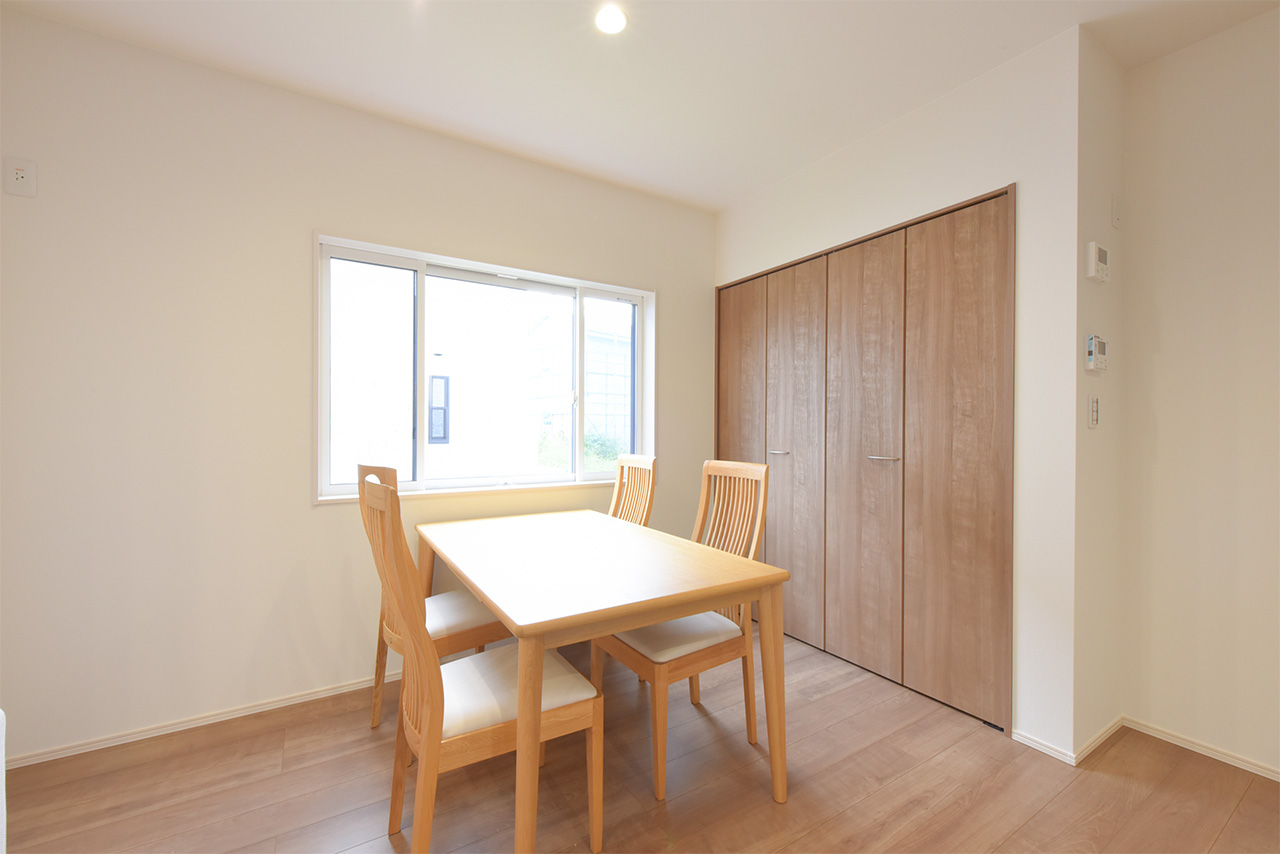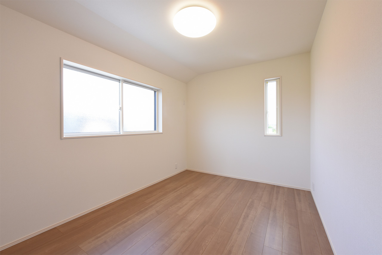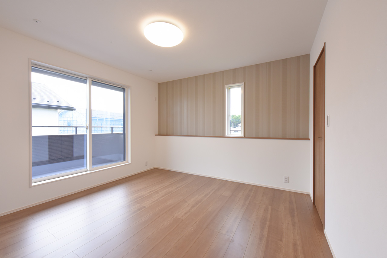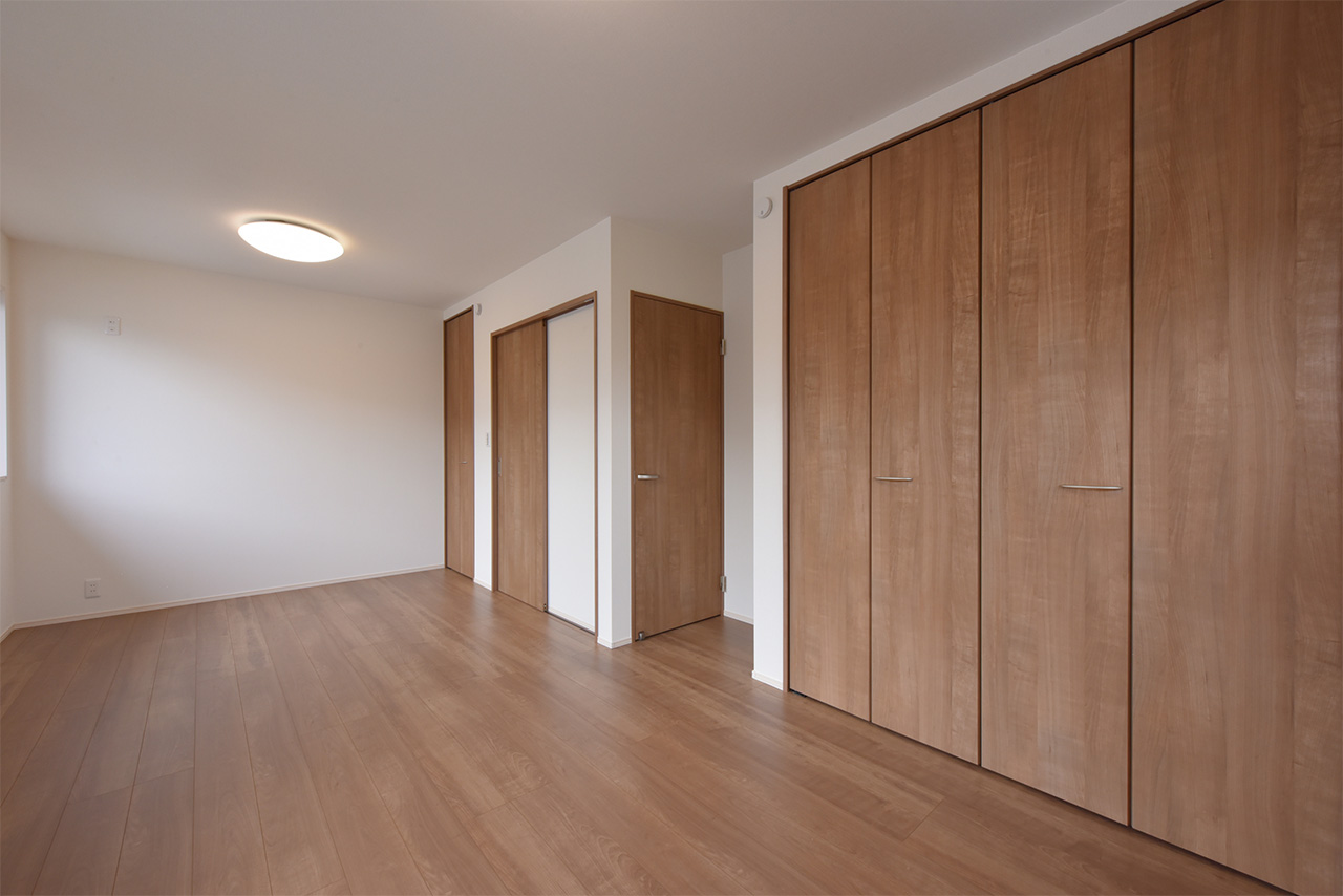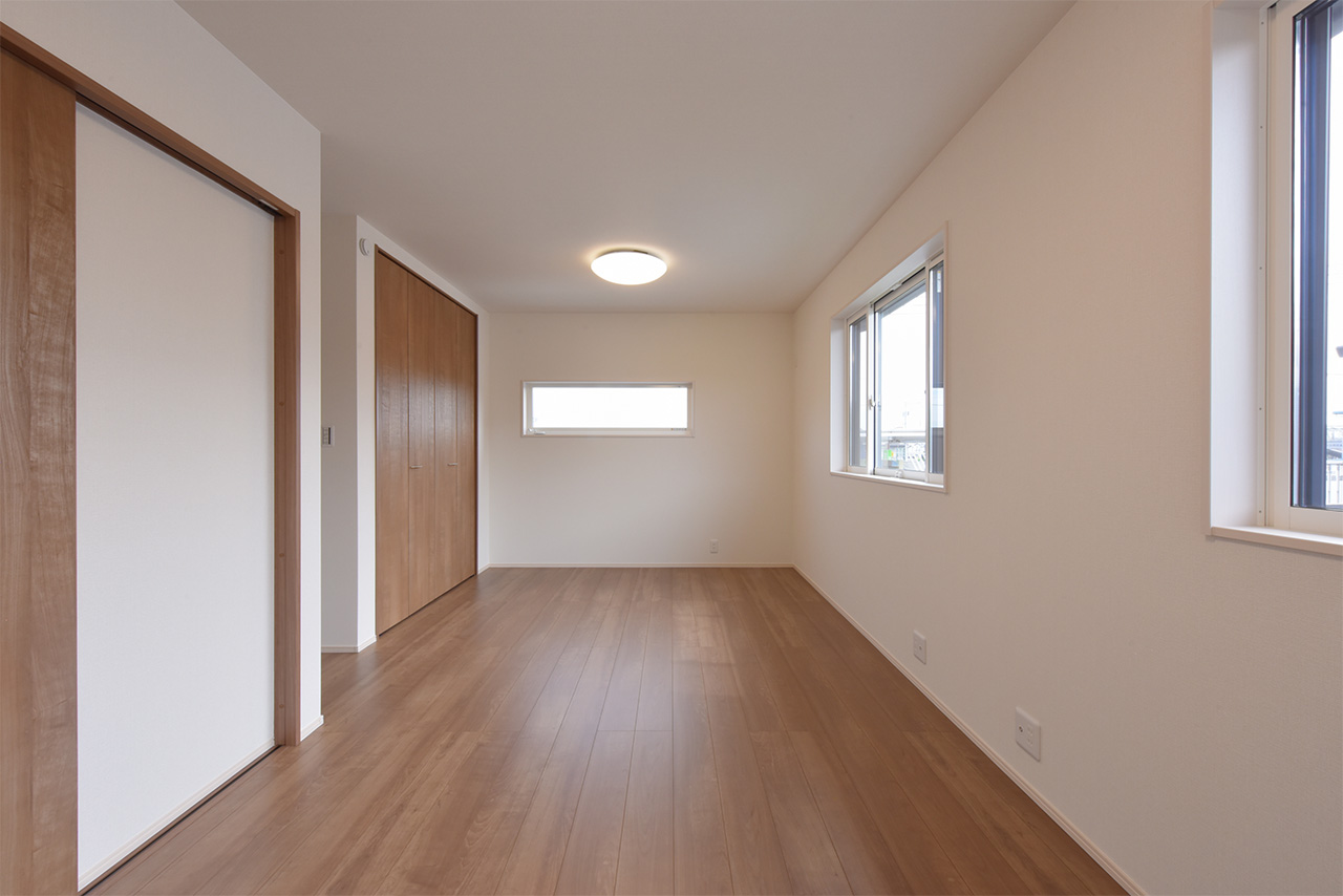 2つの空間に間仕切り可能な、広々とした2階2ドア1ルーム。子供が生まれる前、赤ちゃんが生まれてから、そして大きくなって個室を持つようになるまで対応。子ども達が独立したら広々としたご夫婦の書斎や趣味の部屋にも。ご家族の成長といっしょに変わっていく自由な家づくりが可能です。※間仕切り壁の設置は有料オプションとなります。
