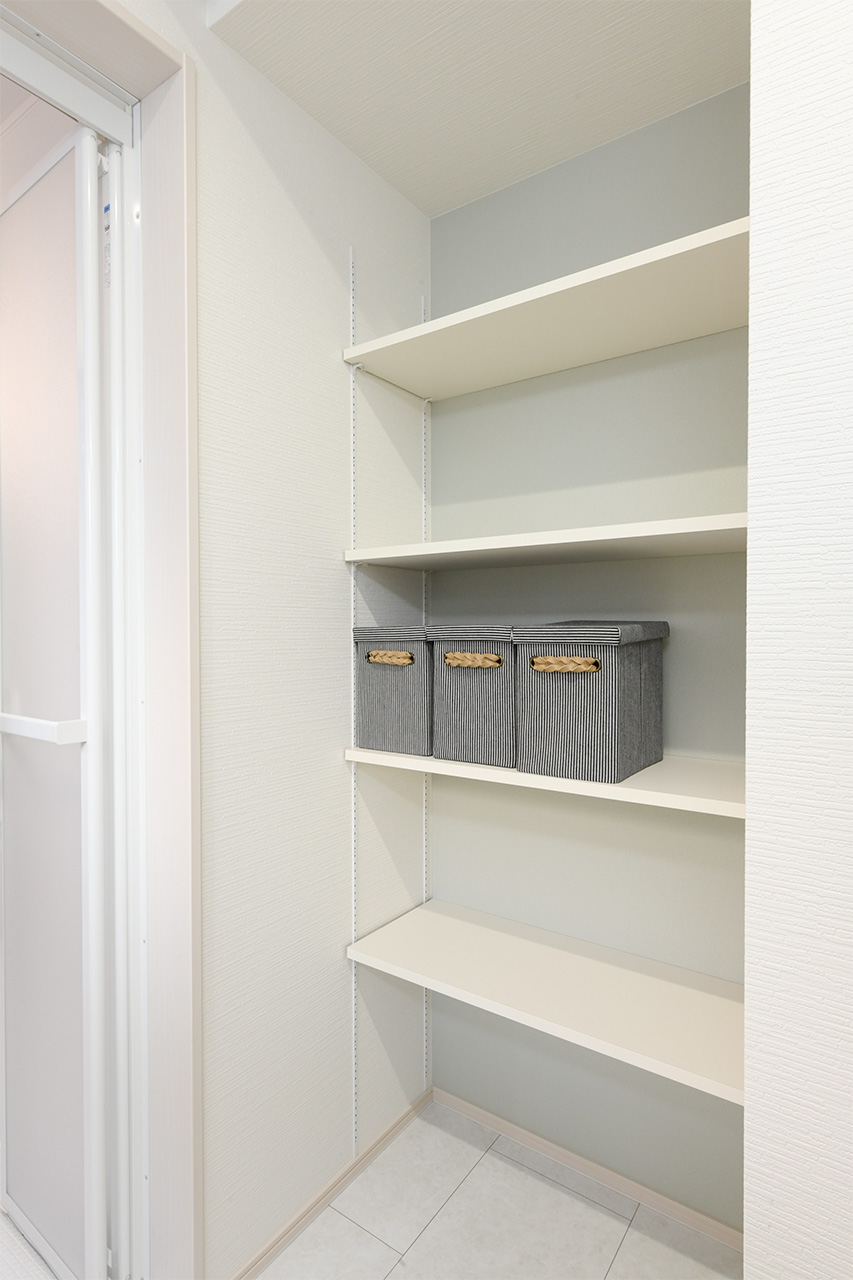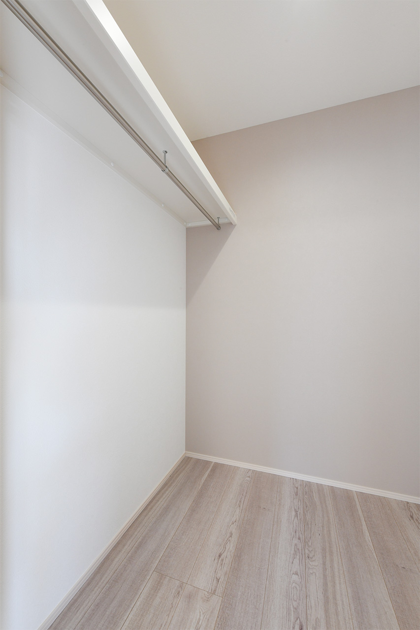 ご夫婦や子ども達の衣類をたっぷりしまえる大容量のウォークインクローゼット。季節の衣類から鞄や帽子などの小物までたっぷり保管可能。ウォークインタイプなので衣類の出し入れや整理整頓もスムーズに行えます。
