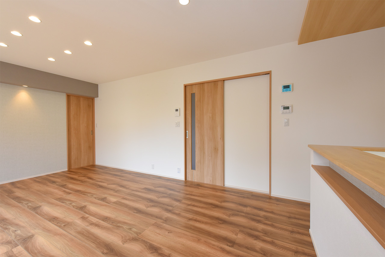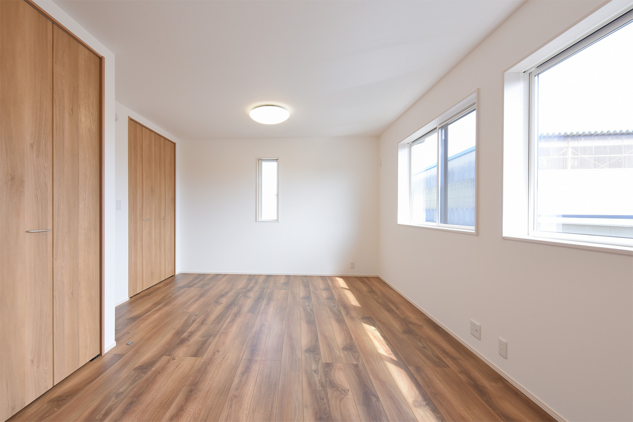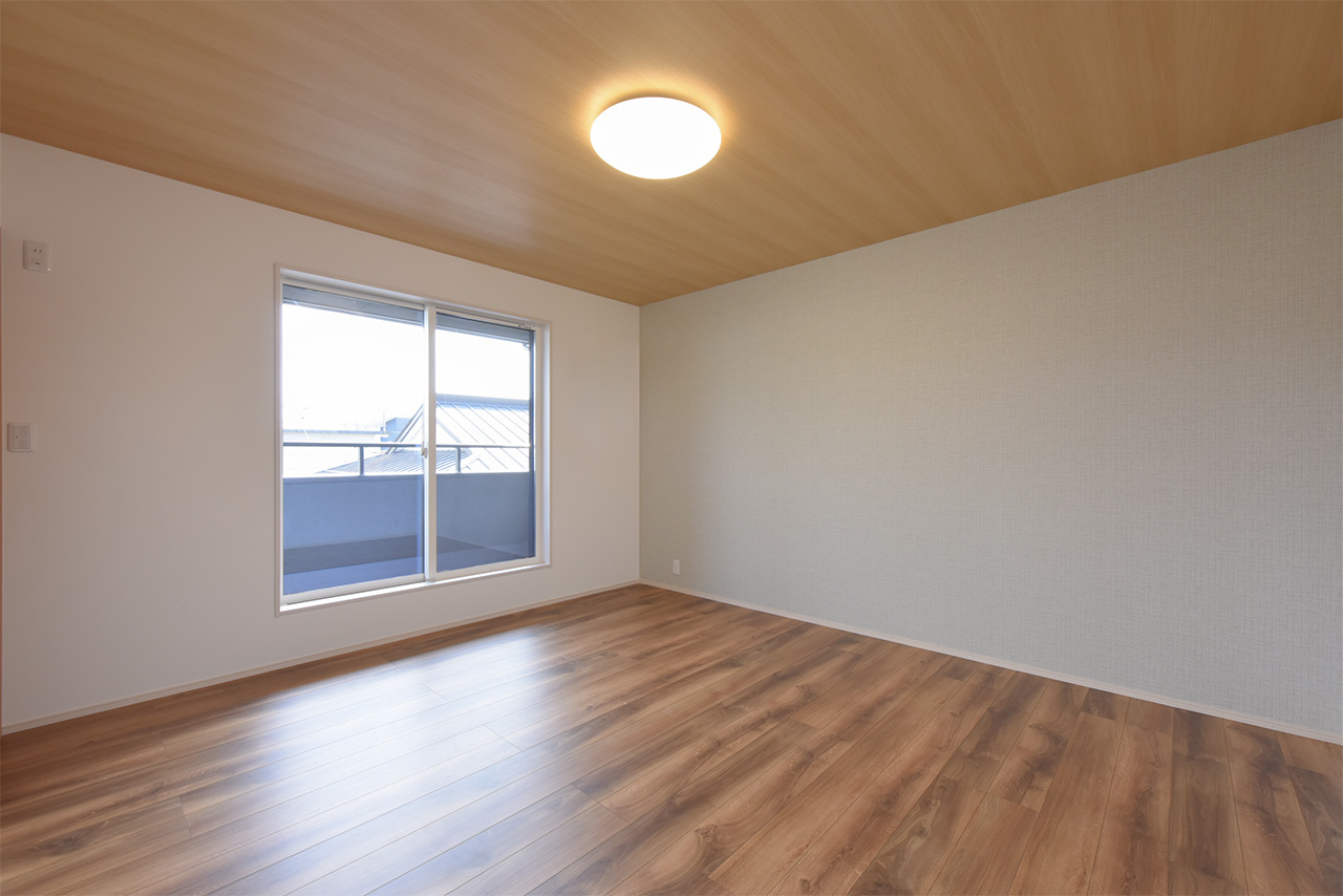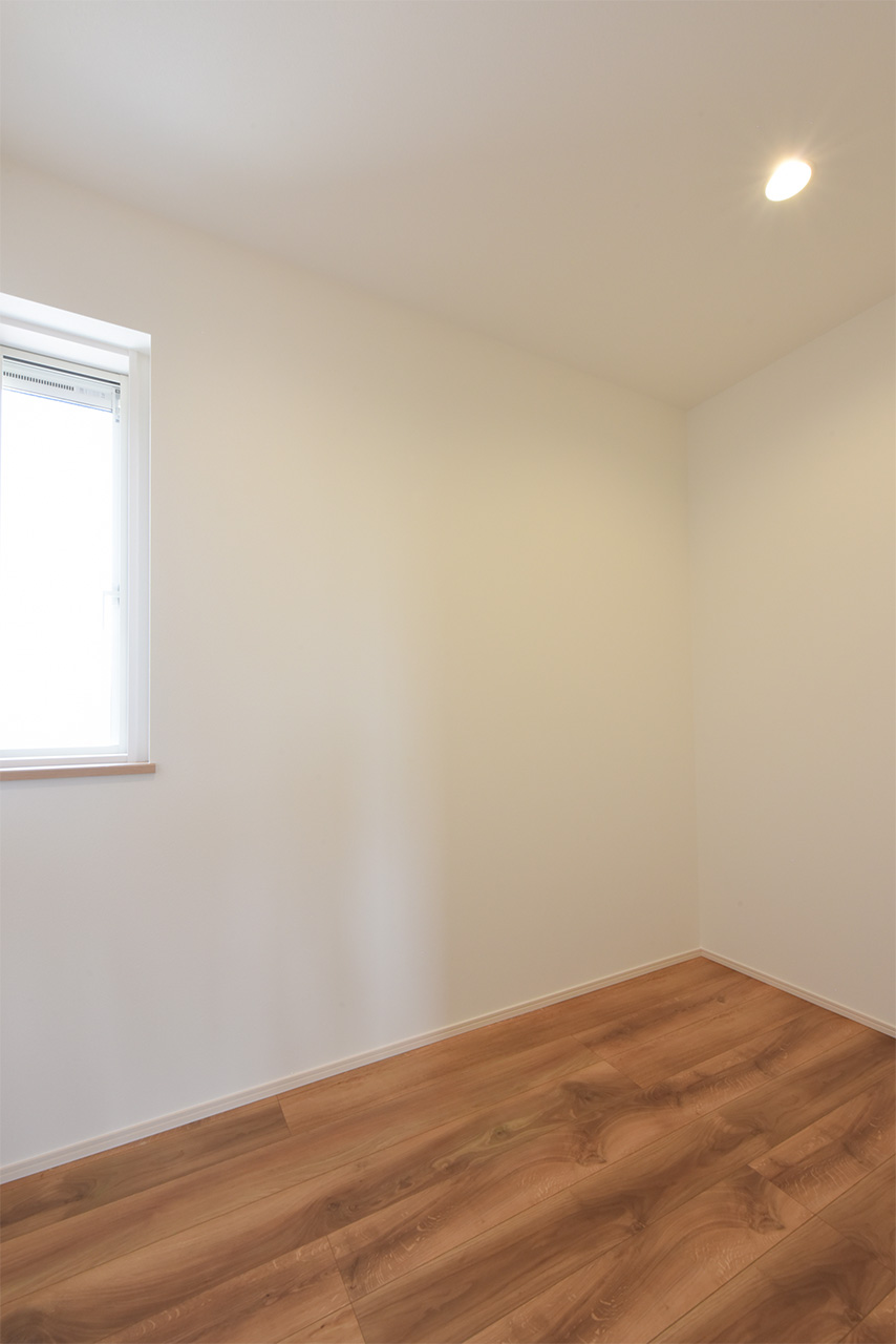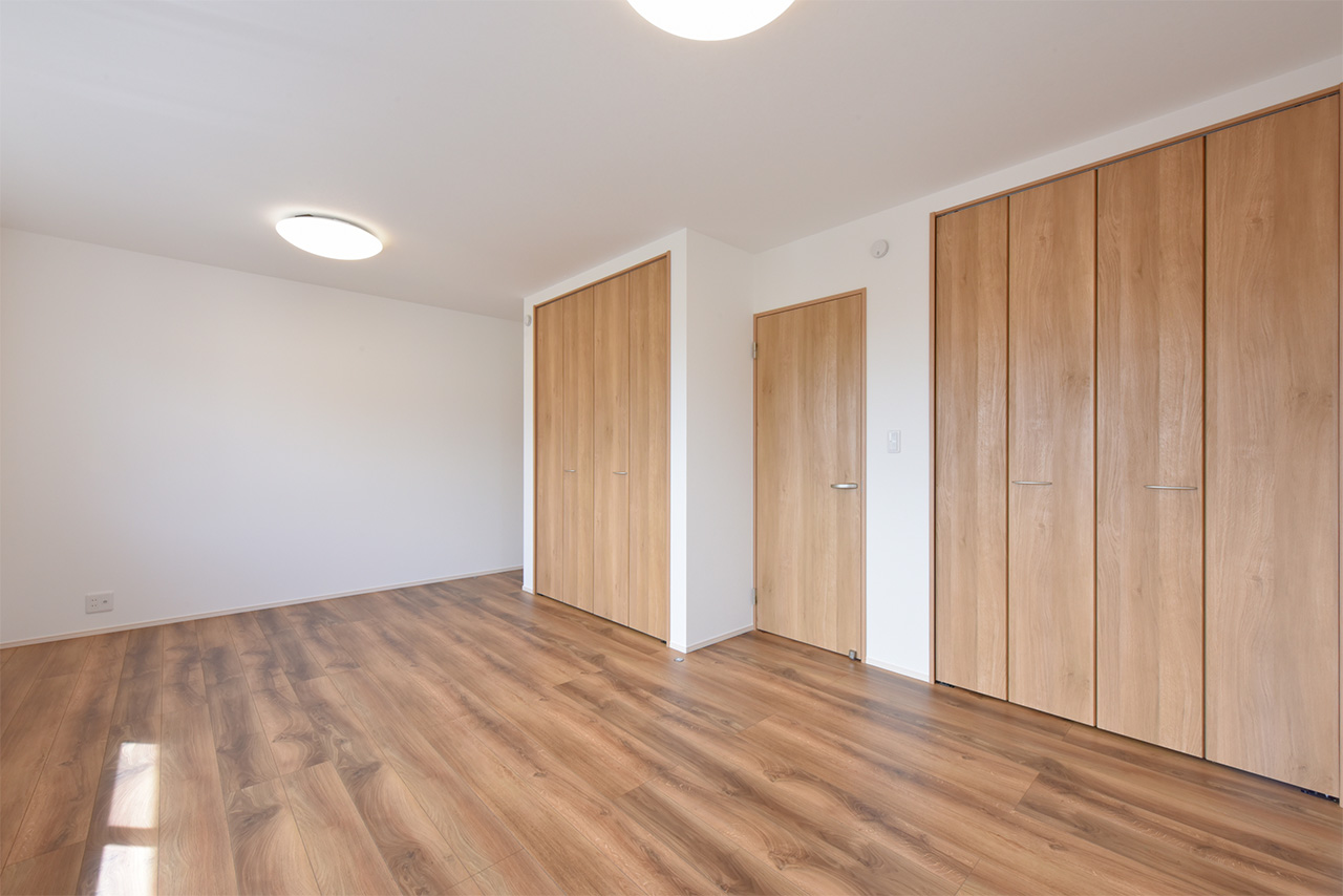 2つの空間に間仕切り可能な、広々とした2階2ドア1ルーム。子供が生まれる前、赤ちゃんが生まれてから、そして大きくなって個室を持つようになるまで対応。子ども達が独立したら広々としたご夫婦の書斎や趣味の部屋にも。ご家族の成長といっしょに変わっていく自由な家づくりが可能です。※間仕切り壁の設置は有料オプションとなります。