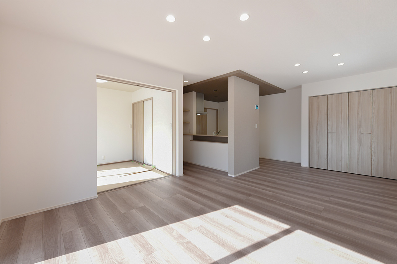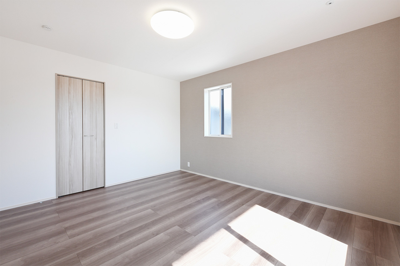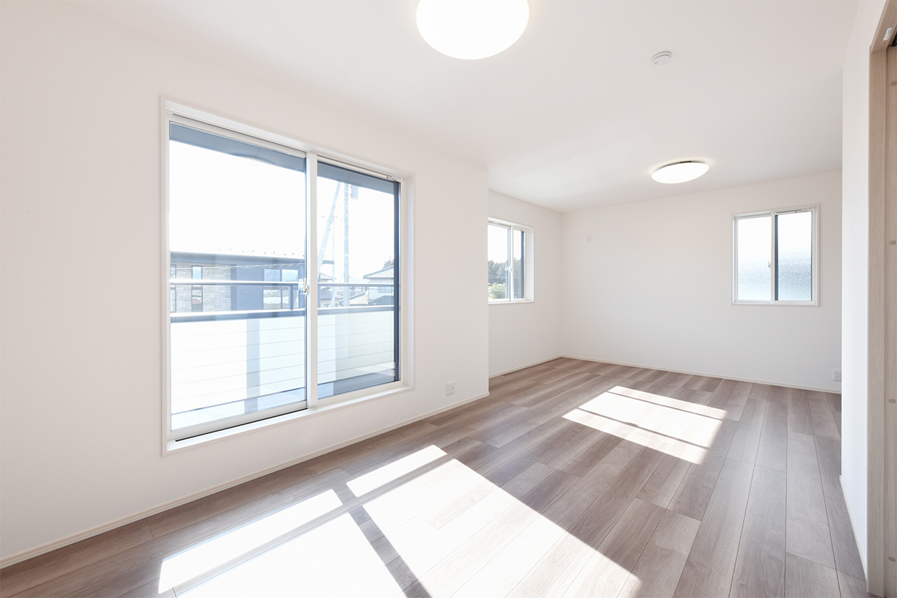 2つの空間に間仕切り可能な、広々とした2階2ドア1ルーム。子供が生まれる前、赤ちゃんが生まれてから、そして大きくなって個室を持つようになるまで対応。子ども達が独立したら広々としたご夫婦の書斎や趣味の部屋にも。ご家族の成長といっしょに変わっていく自由な家づくりが可能です。※間仕切り壁の設置は有料オプションとなります。