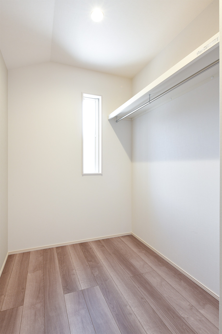 ご夫婦や子ども達の衣類をたっぷりしまえる大容量のウォークインクローゼット。季節の衣類から鞄や帽子などの小物までたっぷり保管可能。ウォークインタイプなので衣類の出し入れや整理整頓もスムーズに行えます。