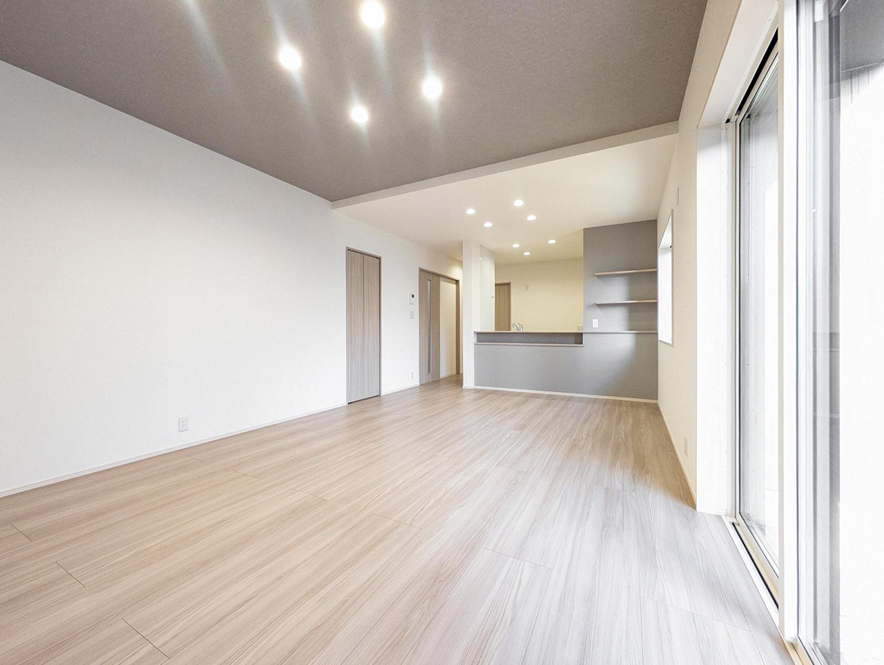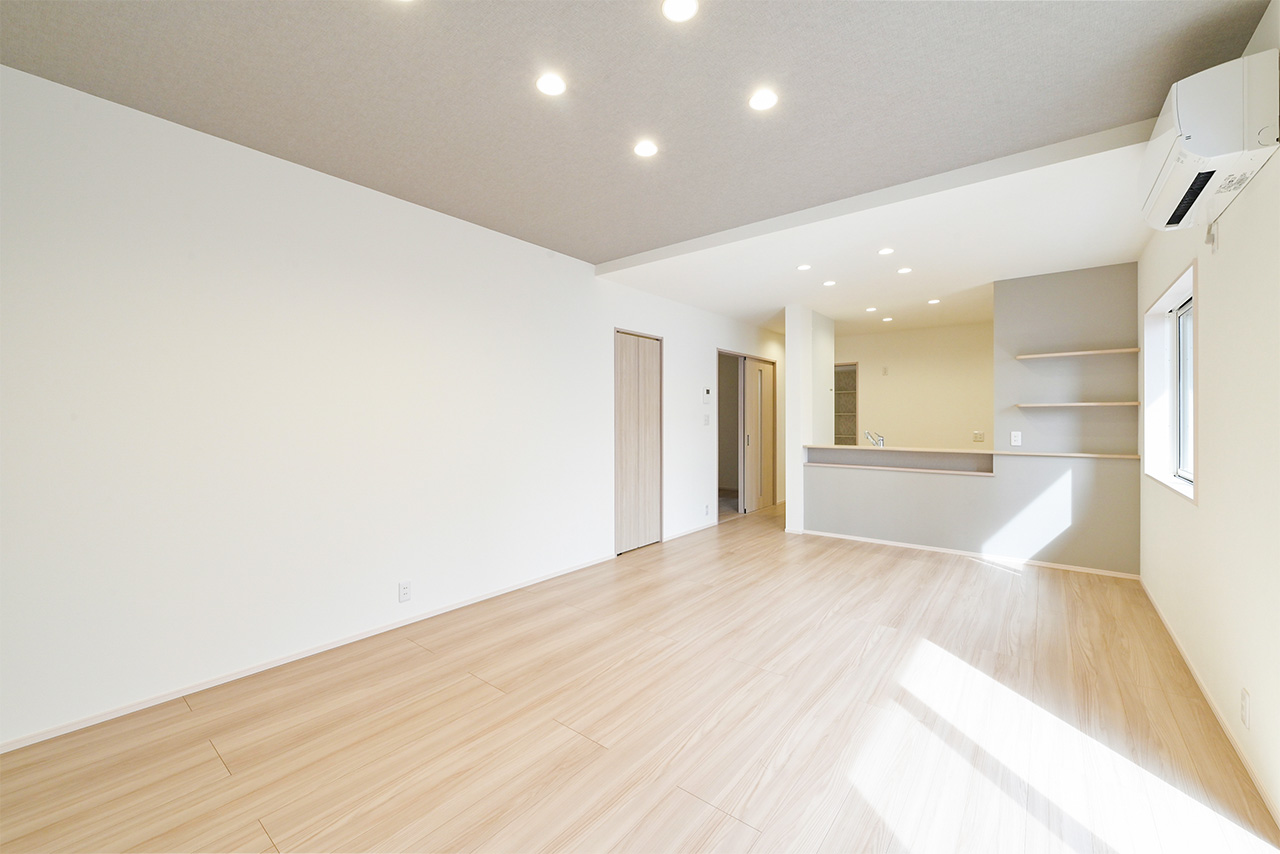 リビングという暮らしのメインスペースは、一日で家族が一番長く過ごす場所。その居心地をさらに高めるために18帖以上のワイドな広さを確保しました。広場のようなパブリックスペースがご家族の集いや団らんを心地よく育みます。