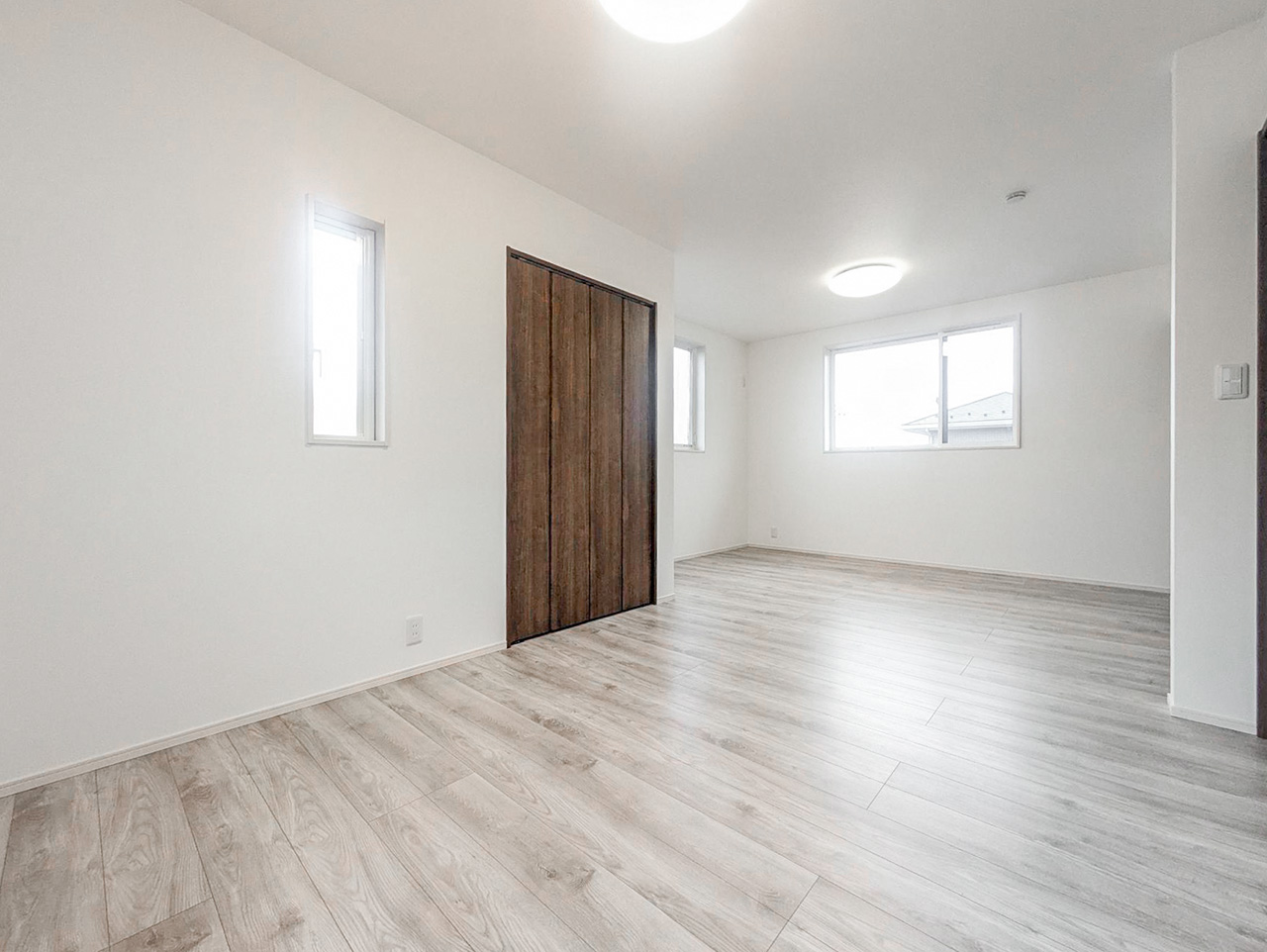 2つの空間に間仕切り可能な、広々とした2階2ドア1ルーム。子供が生まれる前、赤ちゃんが生まれてから、そして大きくなって個室を持つようになるまで対応。子ども達が独立したら広々としたご夫婦の書斎や趣味の部屋にも。ご家族の成長といっしょに変わっていく自由な家づくりが可能です。※間仕切り壁の設置は有料オプションとなります。