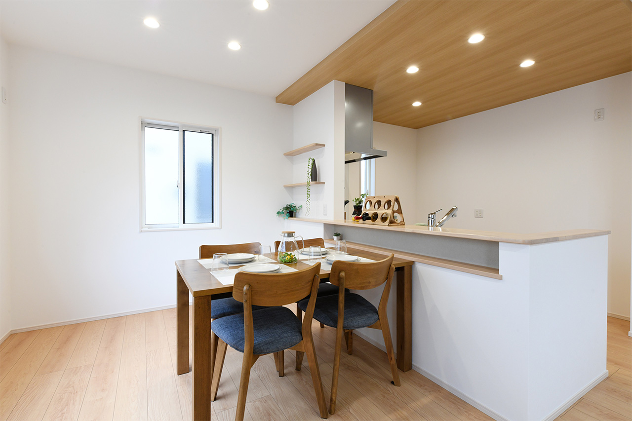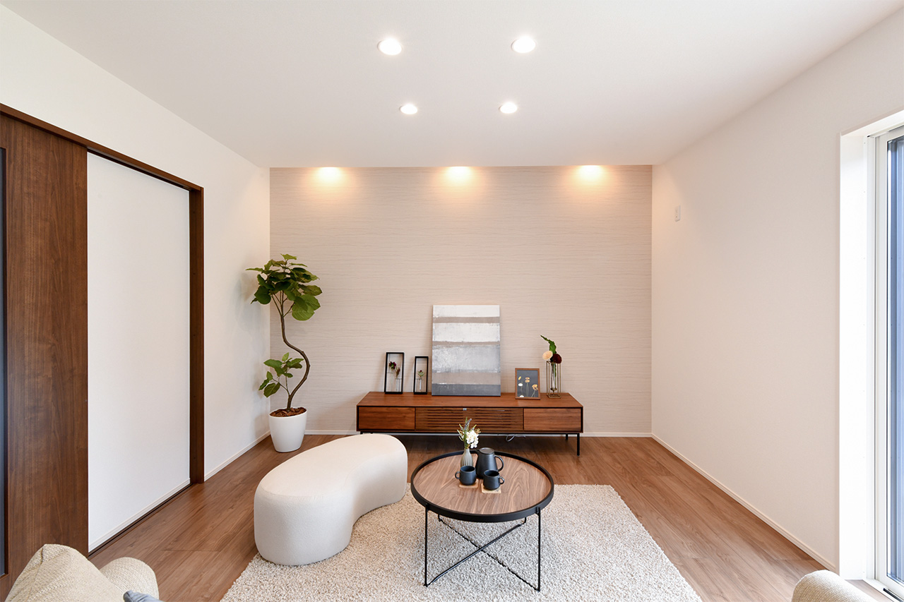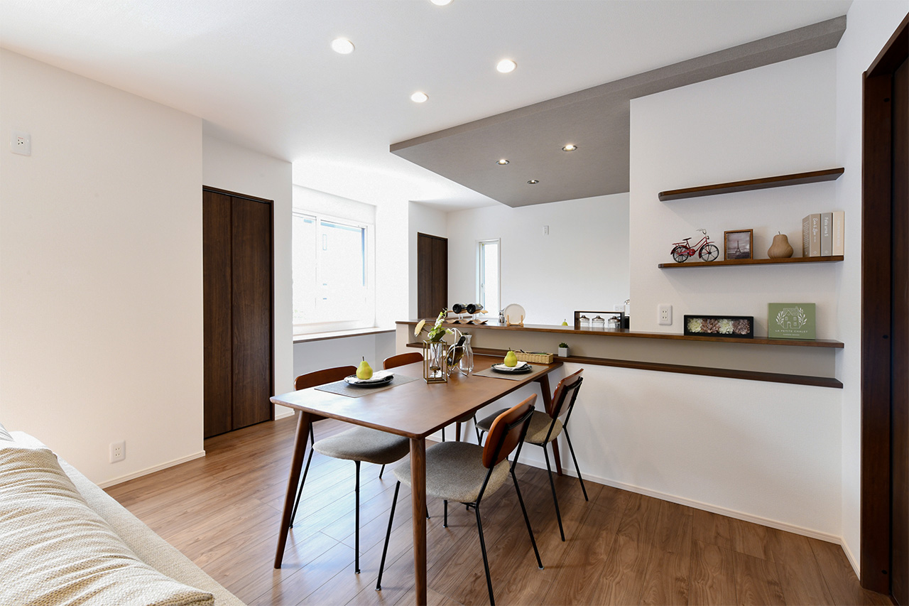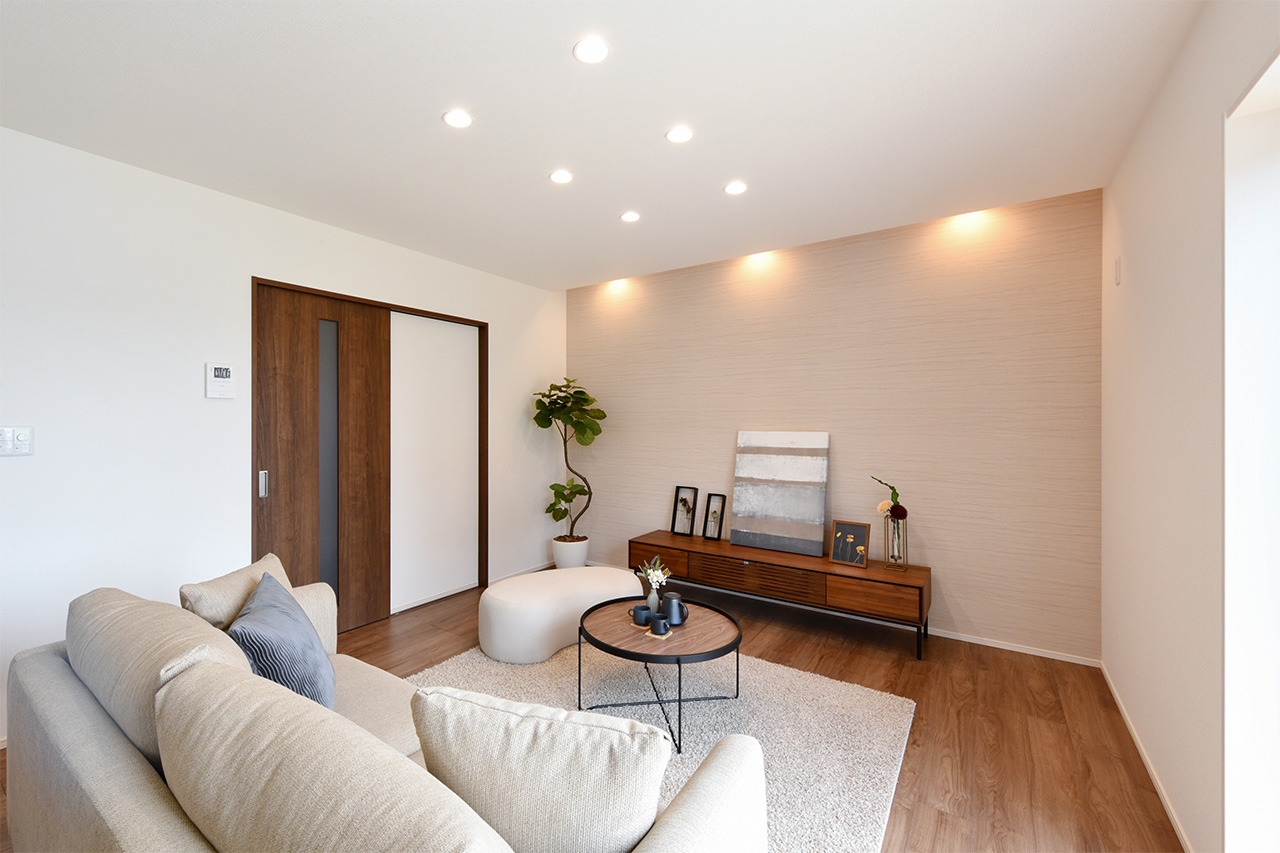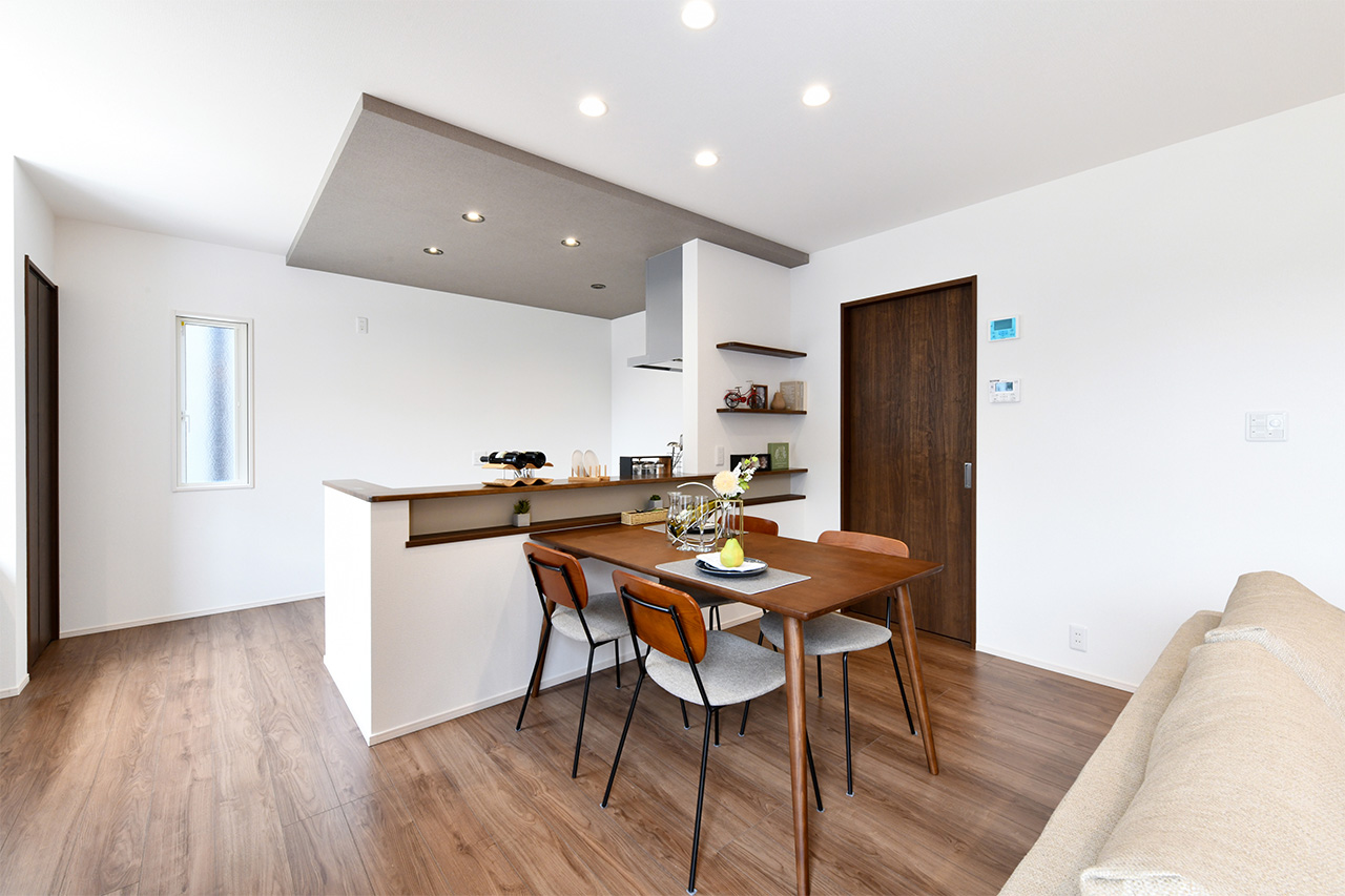 リビングという暮らしのメインスペースは、一日で家族が一番長く過ごす場所。その居心地をさらに高めるために18帖以上のワイドな広さを確保しました。広場のようなパブリックスペースがご家族の集いや団らんを心地よく育みます。