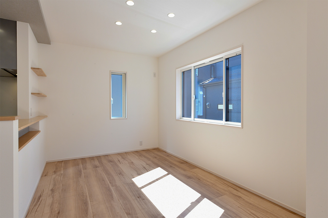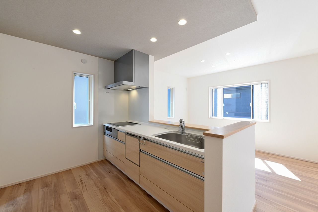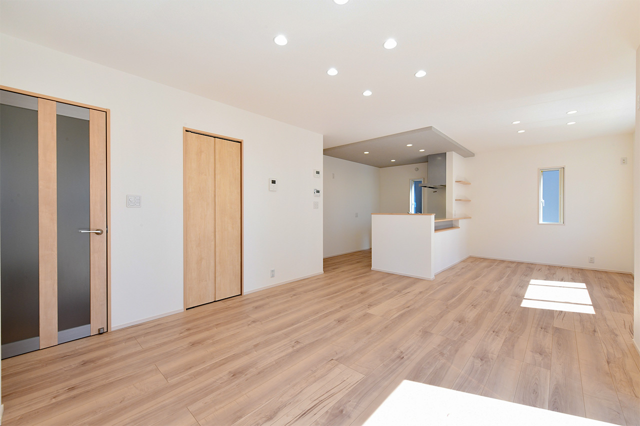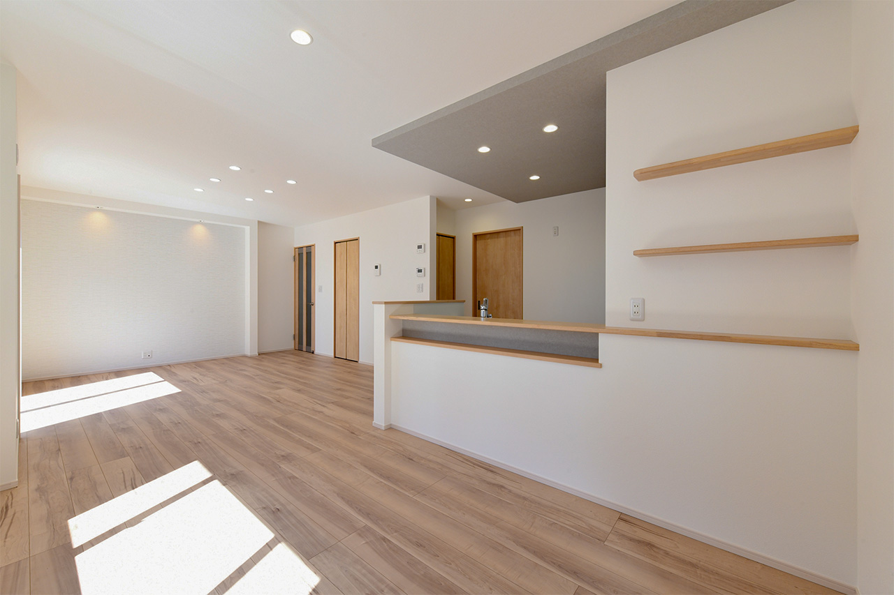 リビングという暮らしのメインスペースは、一日で家族が一番長く過ごす場所。その居心地をさらに高めるために18帖以上のワイドな広さを確保しました。広場のようなパブリックスペースがご家族の集いや団らんを心地よく育みます。