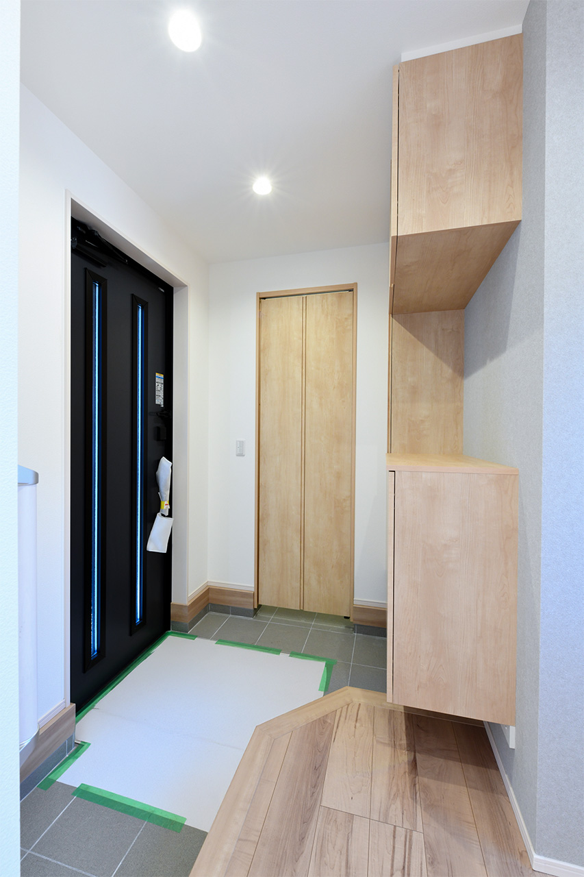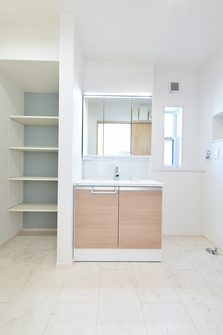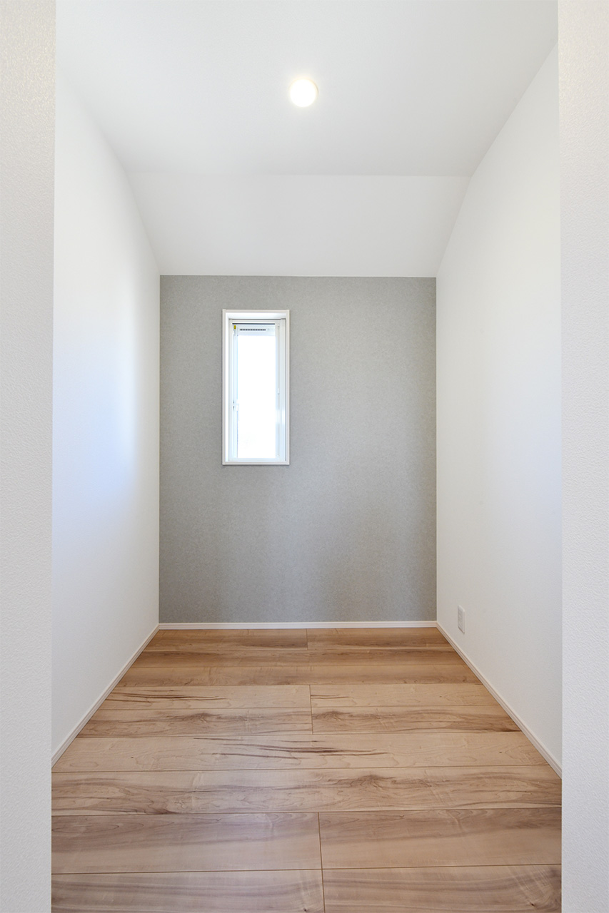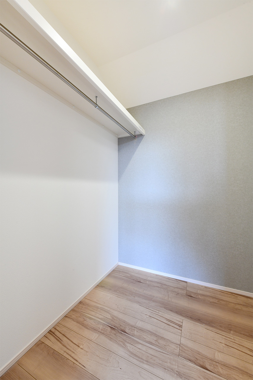 ご夫婦や子ども達の衣類をたっぷりしまえる大容量のウォークインクローゼット。季節の衣類から鞄や帽子などの小物までたっぷり保管可能。ウォークインタイプなので衣類の出し入れや整理整頓もスムーズに行えます。