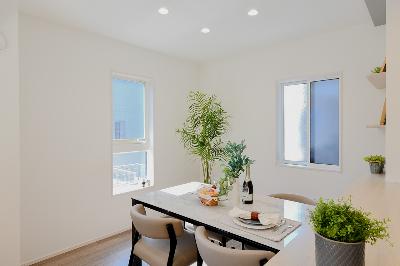 【駐車場4台可】水回りを短い距離で結ぶ、スマートな家事動線を採用