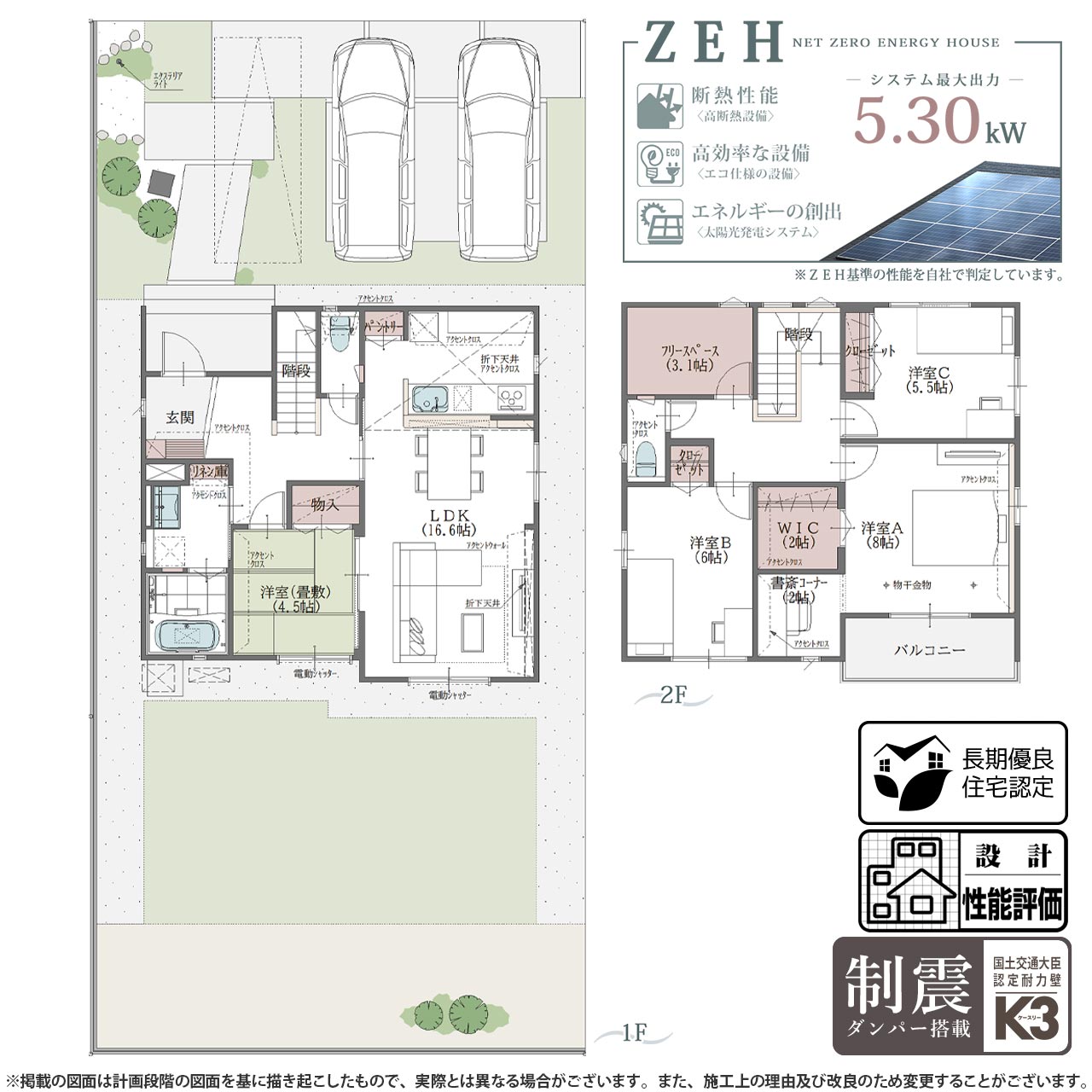国土交通大臣認定耐力壁「K3」制震ダンパー搭載