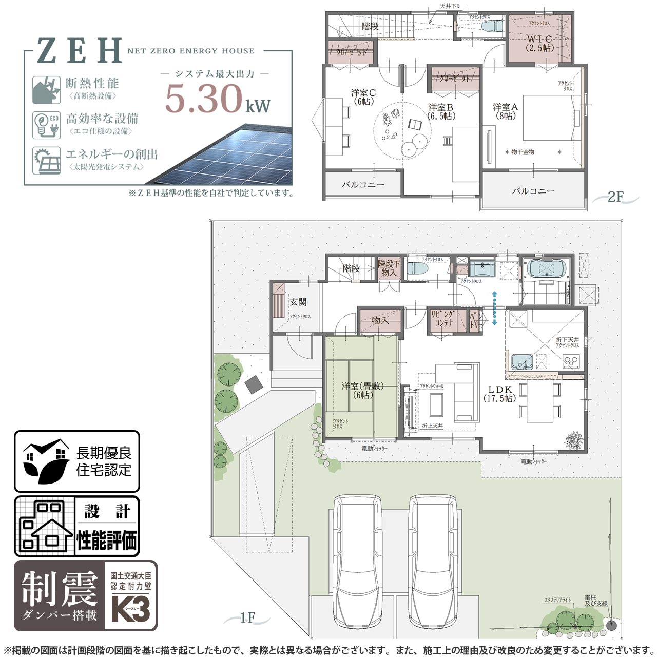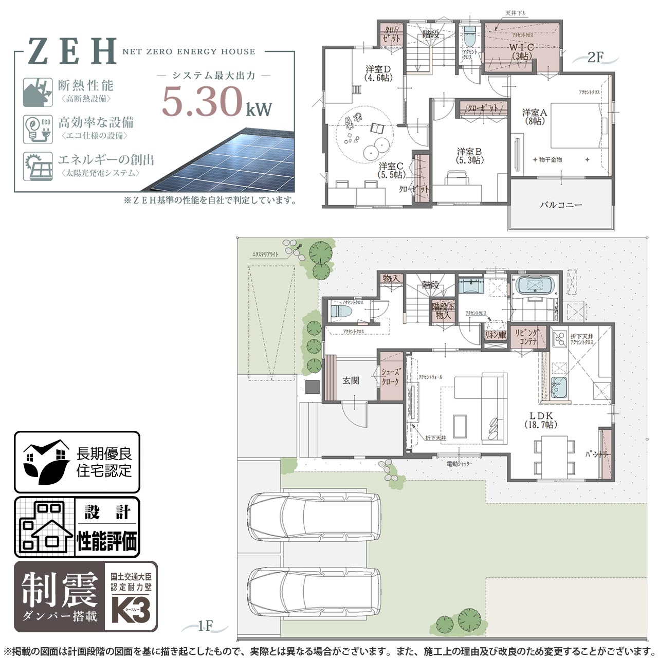| 販売価格 | 3,570万円 〜 3,980万円(外構工事費・消費税込) ※販売価格には建物の消費税分が含まれます。 |
