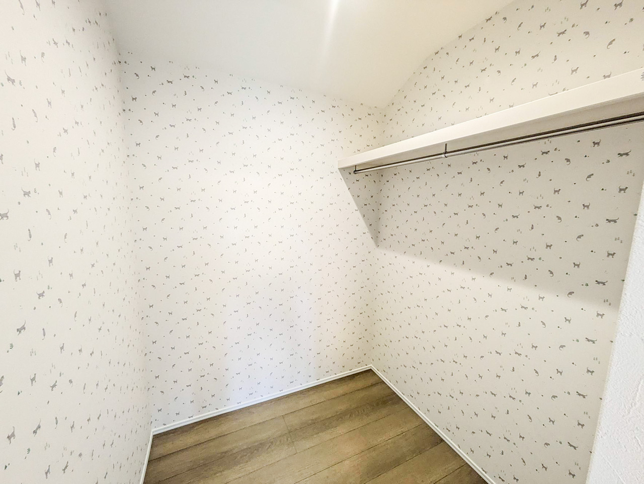 ご夫婦や子ども達の衣類をたっぷりしまえる大容量のウォークインクローゼット。季節の衣類から鞄や帽子などの小物までたっぷり保管可能。ウォークインタイプなので衣類の出し入れや整理整頓もスムーズに行えます。