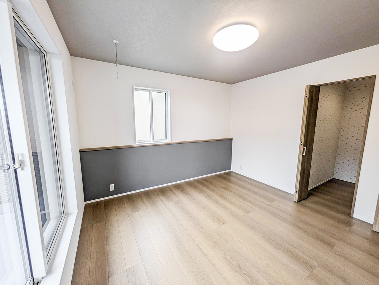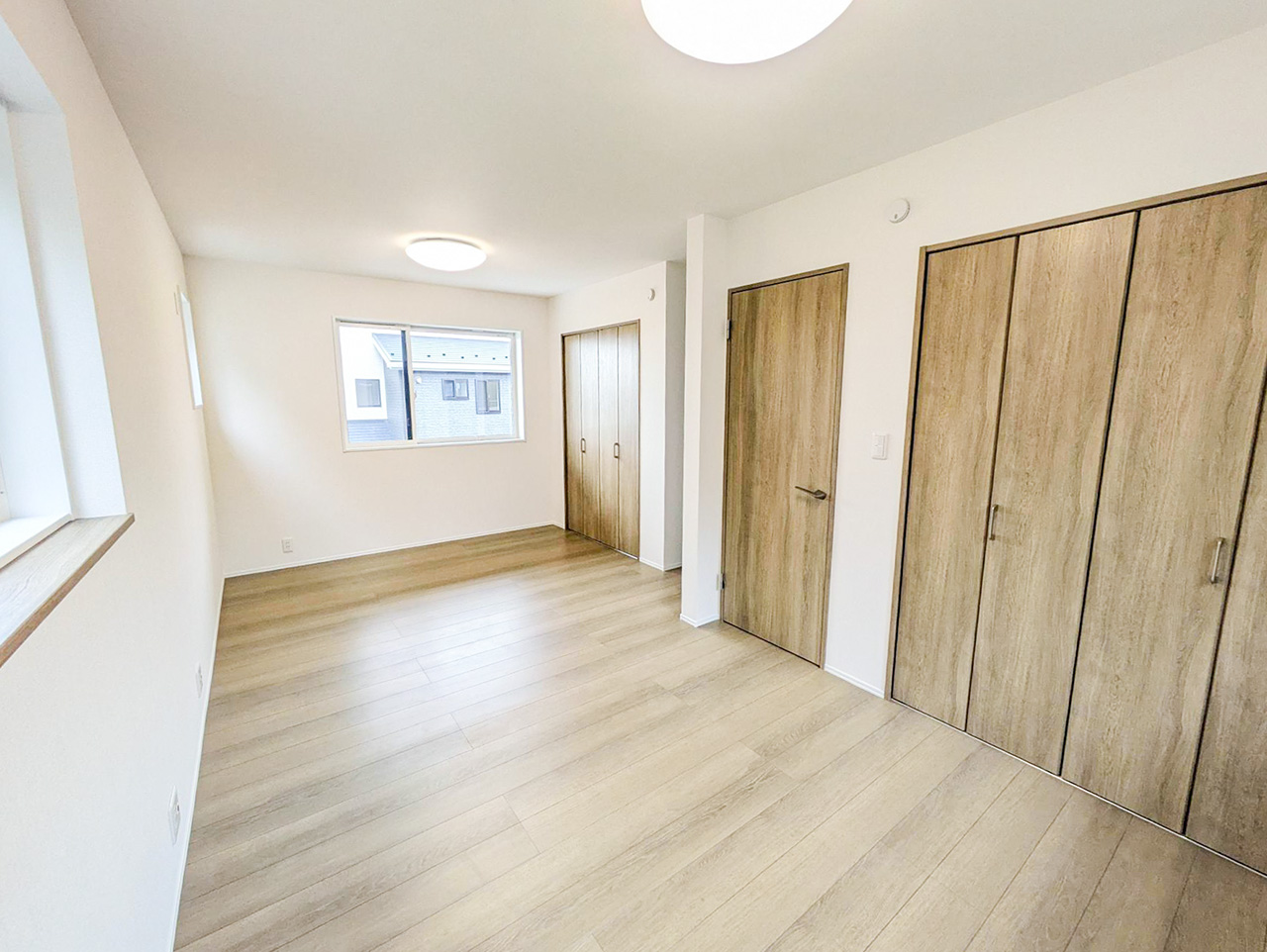 2つの空間に間仕切り可能な、広々とした2階2ドア1ルーム。子供が生まれる前、赤ちゃんが生まれてから、そして大きくなって個室を持つようになるまで対応。子ども達が独立したら広々としたご夫婦の書斎や趣味の部屋にも。ご家族の成長といっしょに変わっていく自由な家づくりが可能です。※間仕切り壁の設置は有料オプションとなります。