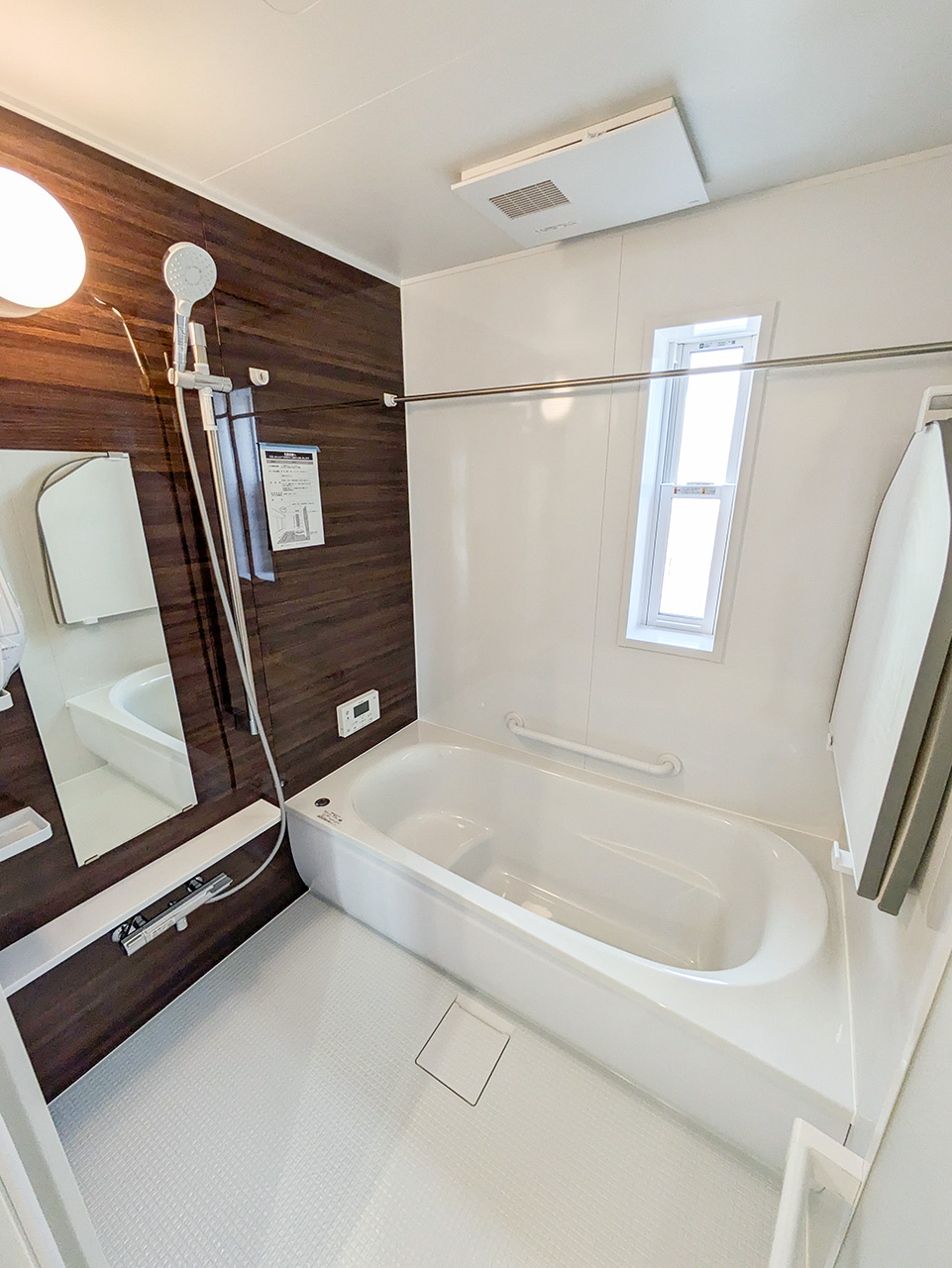 雨の日も気にせず洗濯物が浴室内に干せる浴室換気乾燥暖房機を標準装備。時間も天気も気にせず干せるからとても便利。また、浴室のジメジメした環境から発生するカビも抑えることができます。